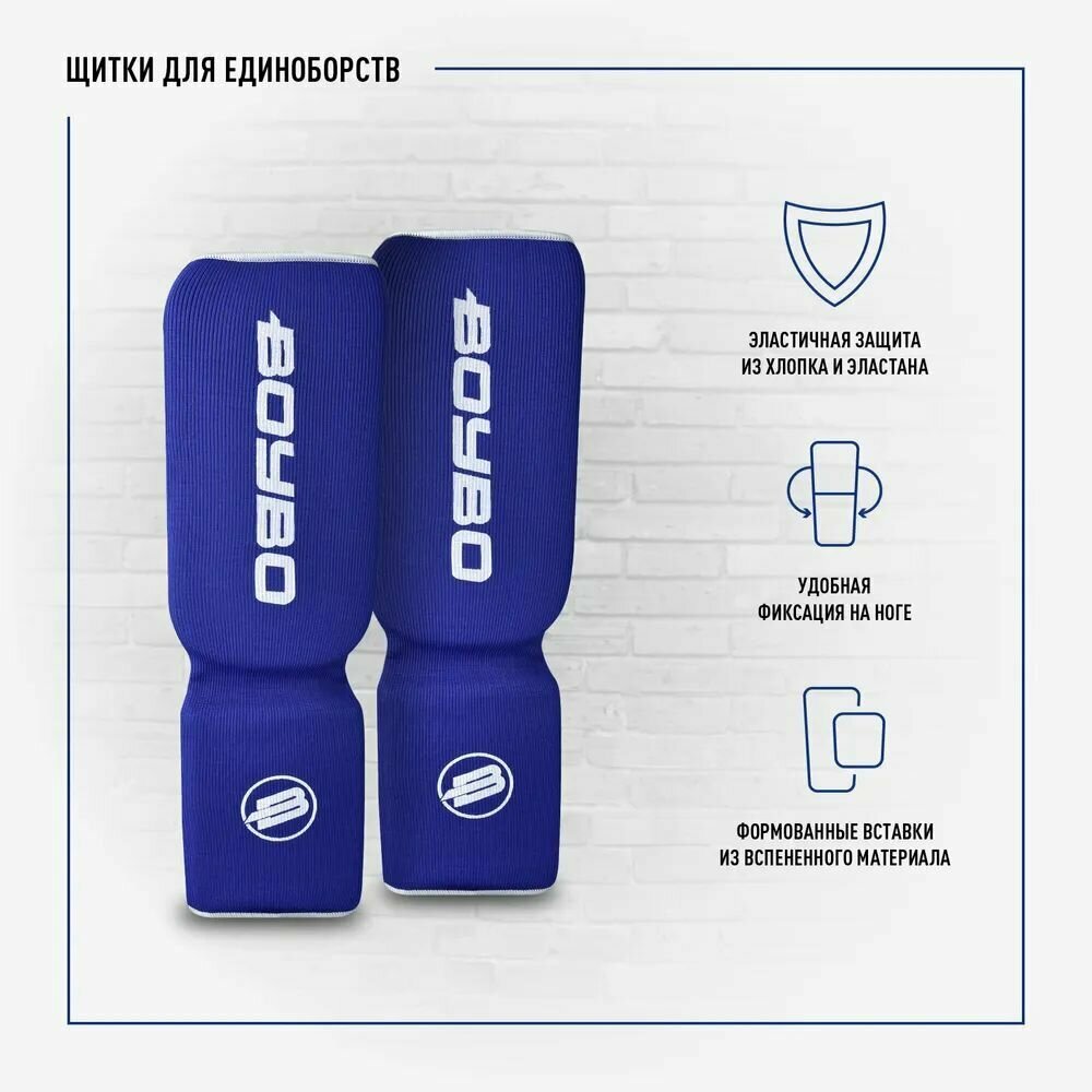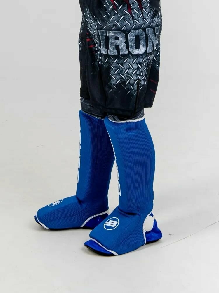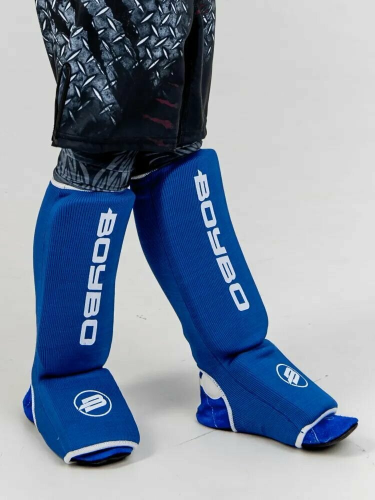 Щитки для защиты голени и стопы Boybo для единоборств, кикбоксинга, ММА, карате, защита голеностопа, синие, 2XS