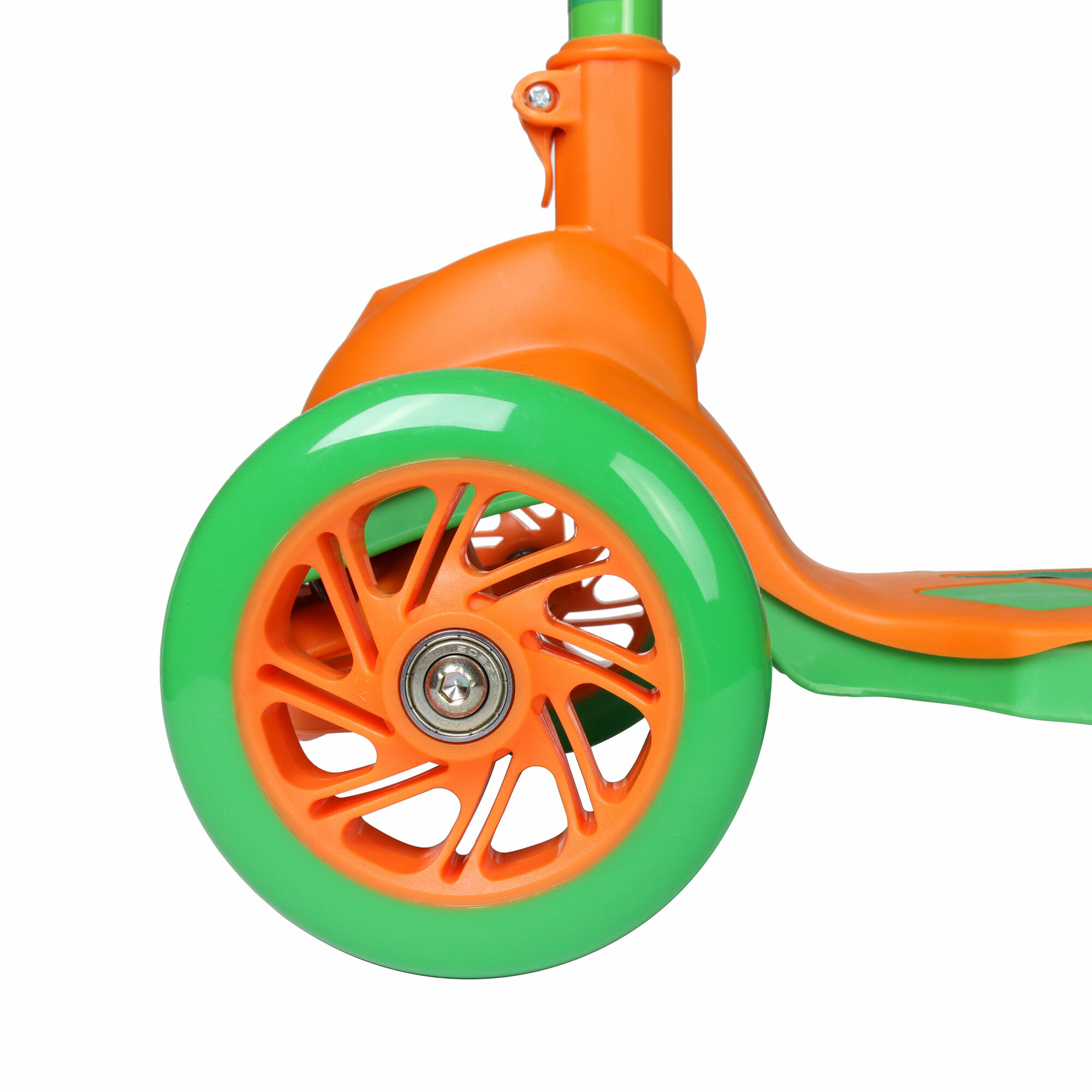 Самокат детский трехколесный COMIRON Yeenot "Зверята", регулируемая складная ручка, светящиеся колеса 110 и 75 мм, нагрузка до 40 кг, зеленый / 1 шт.
