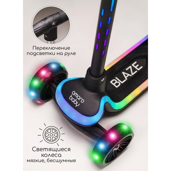 Самокат (кикборд) трехколёсный Amarobaby Blaze, чёрный