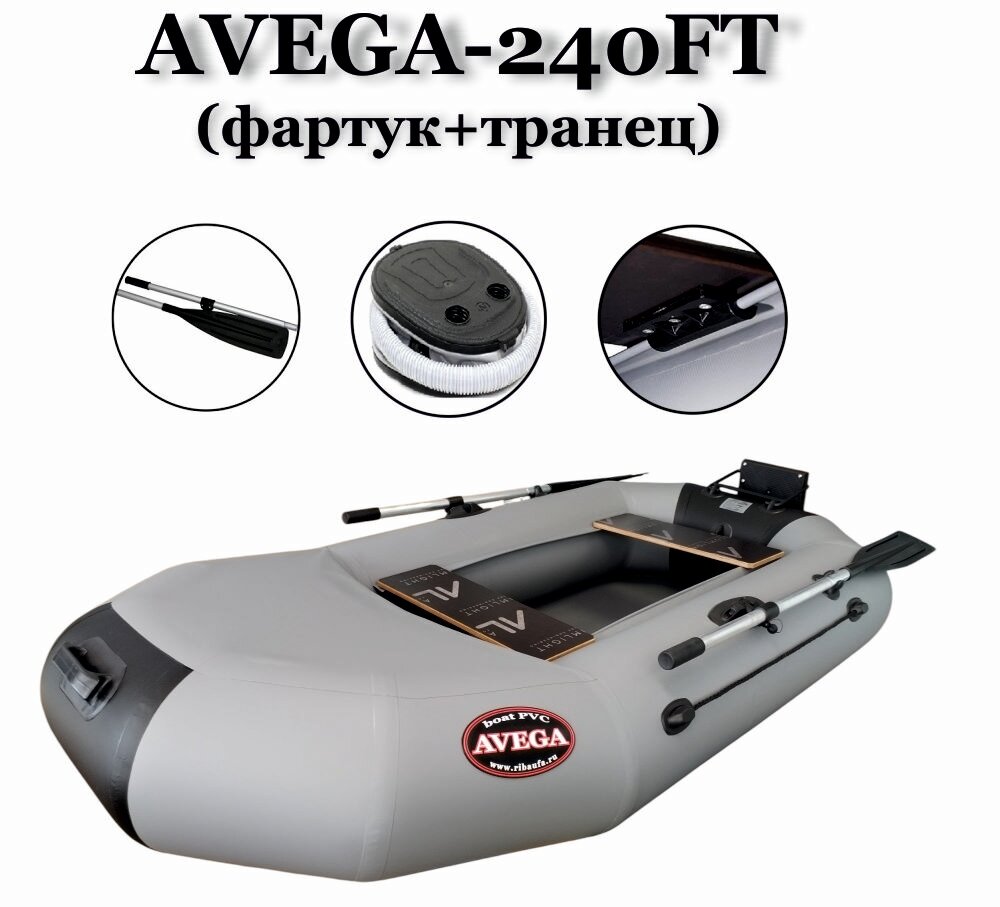 Лодка под мотор до 3,5л. с. из армированного пвх. AVEGA 240 ФТ (Фартук+Транец) серая интересное: