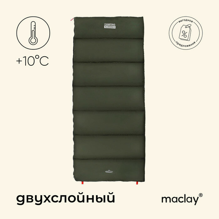 Maclay Спальный мешок maclay camping summer, одеяло, 2 слоя, правый, 220х90 см, +10/+25°С