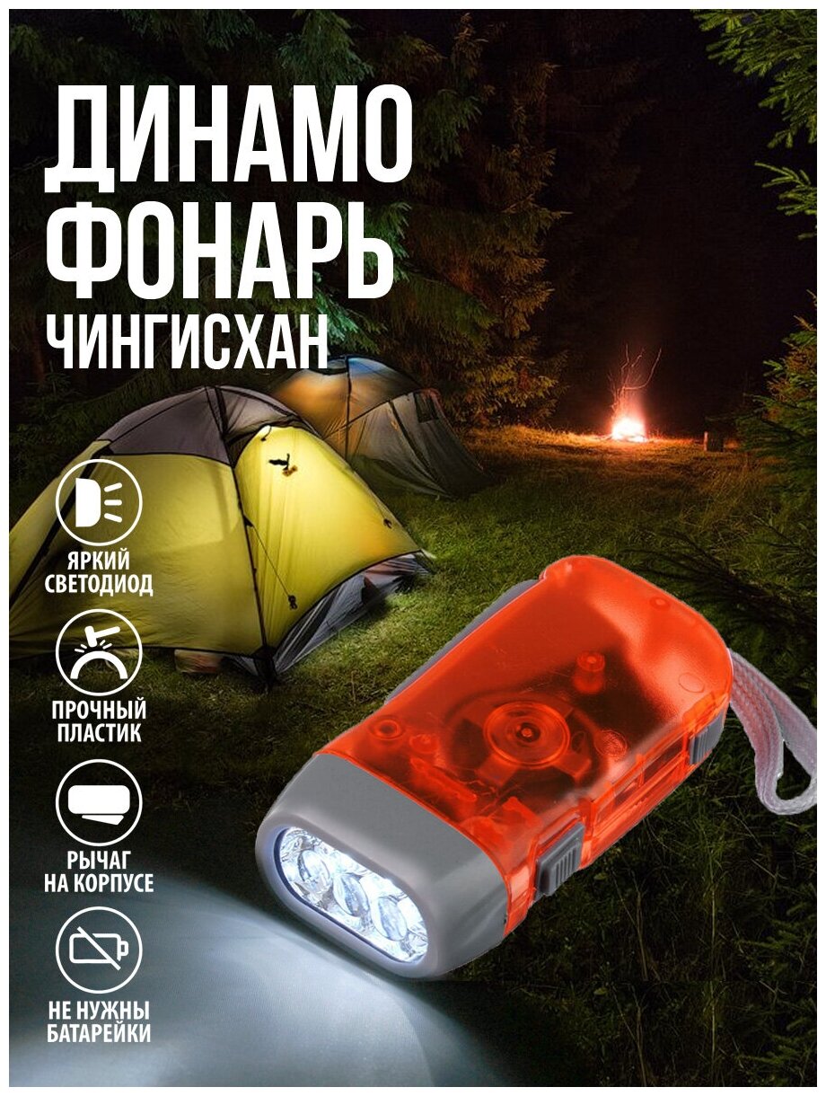 Ручной фонарь Ермак/Чингисхан 198-013 оранжевый/серый, динамический и от батареек интересное: