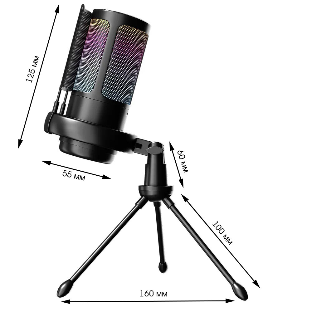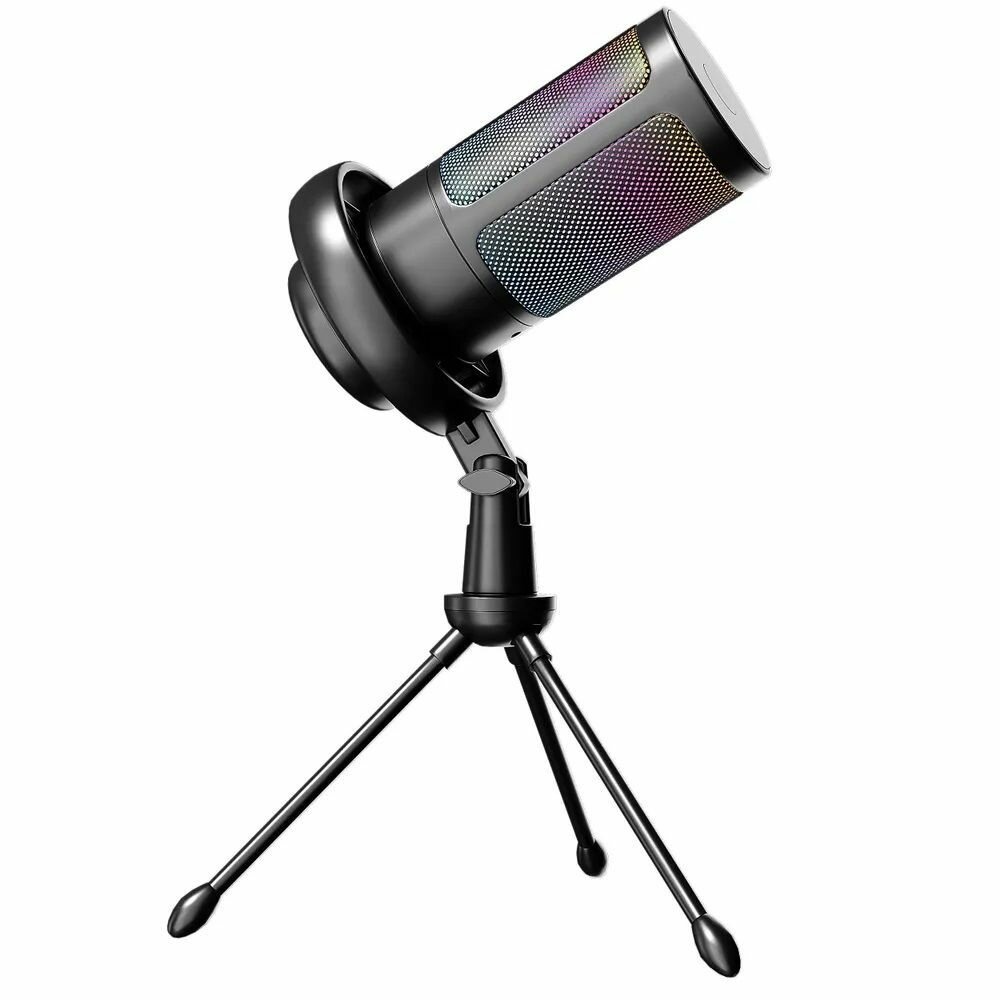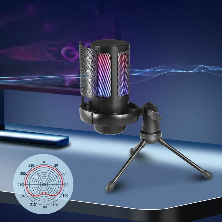 Микрофон для компьютера игровой с поп-фильтром, конденсаторный, на стойке, с RGB подсветкой, микрофон игровой, для стриминга, USB микрофон