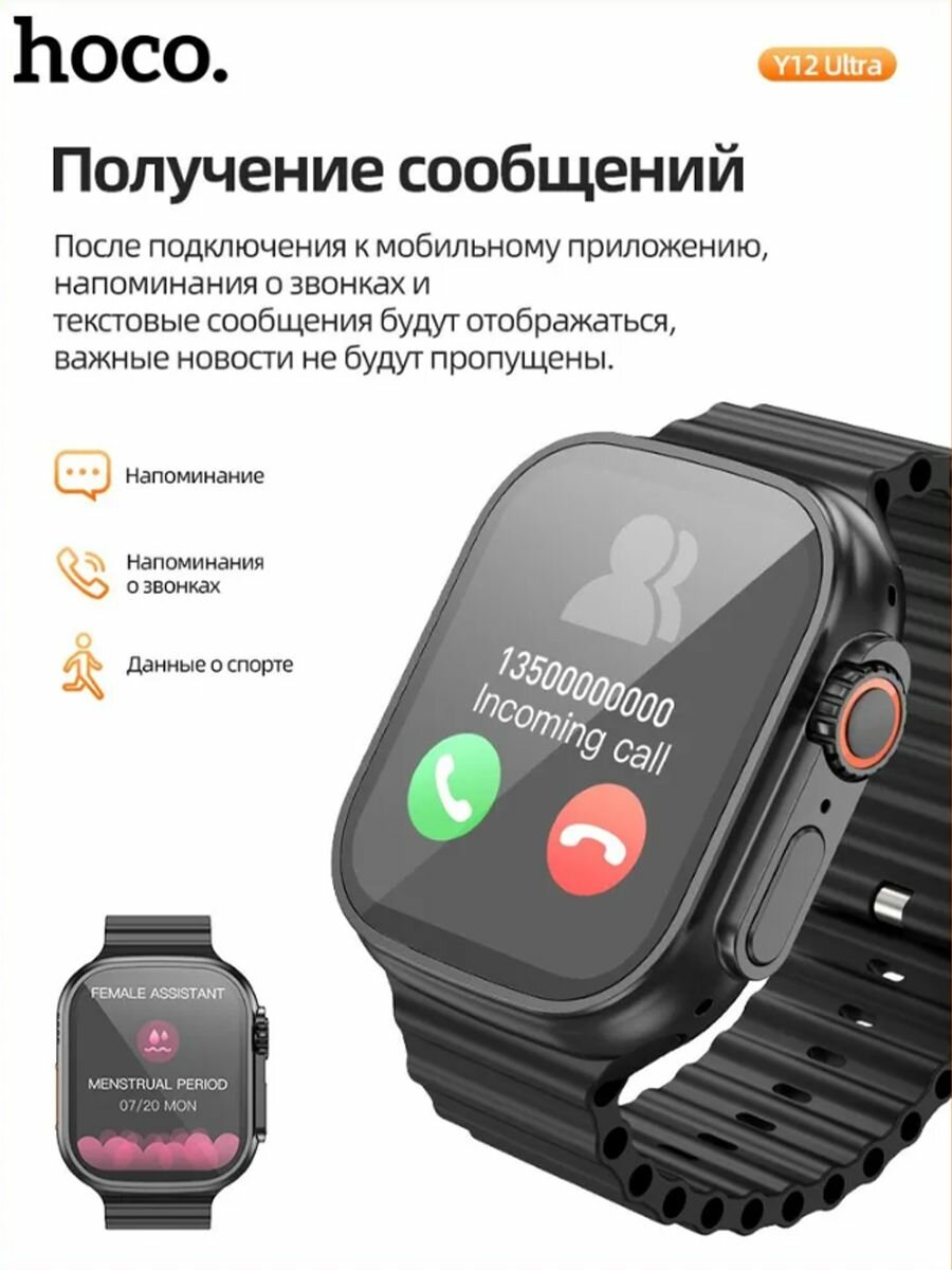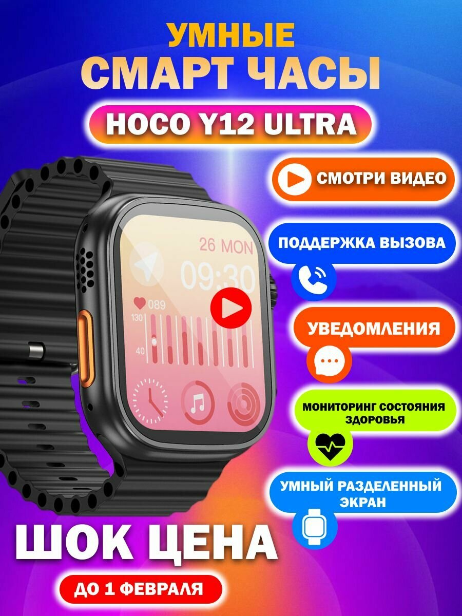 Умные часы Y12 Ultra Smart watch Hoco, черные