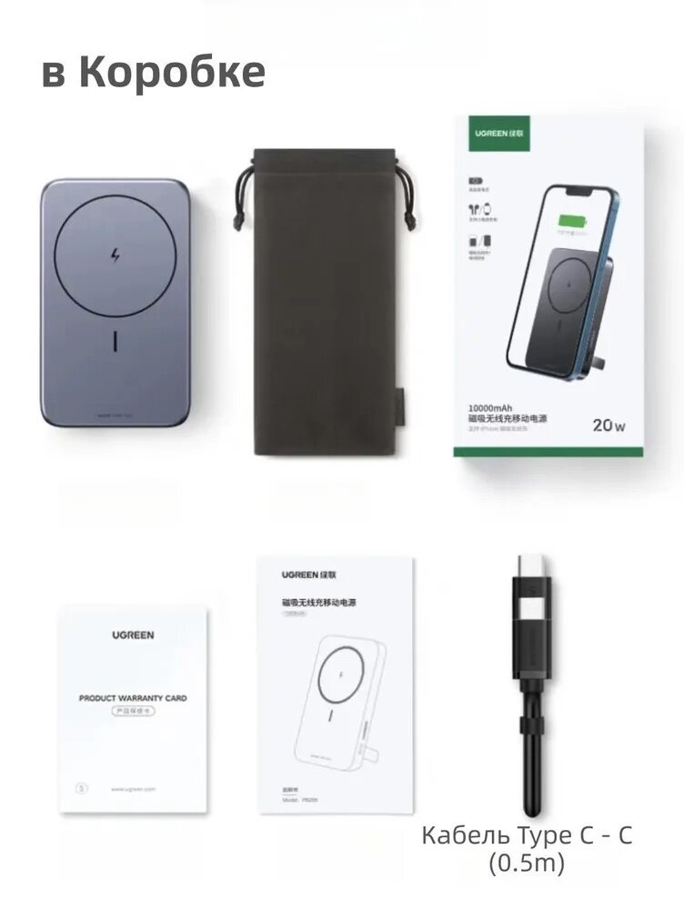 Внешний аккумулятор UGREEN (PB206-1) 15086-0 10000mAh MIni Magnetic Wireless 20W Power Bank With Holder - Space Gray интересное: