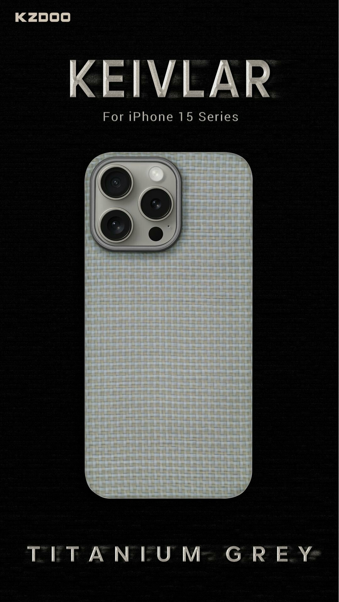Чехол ультратонкий K-DOO Kevlar для iPhone 15 Pro, титановый-серый