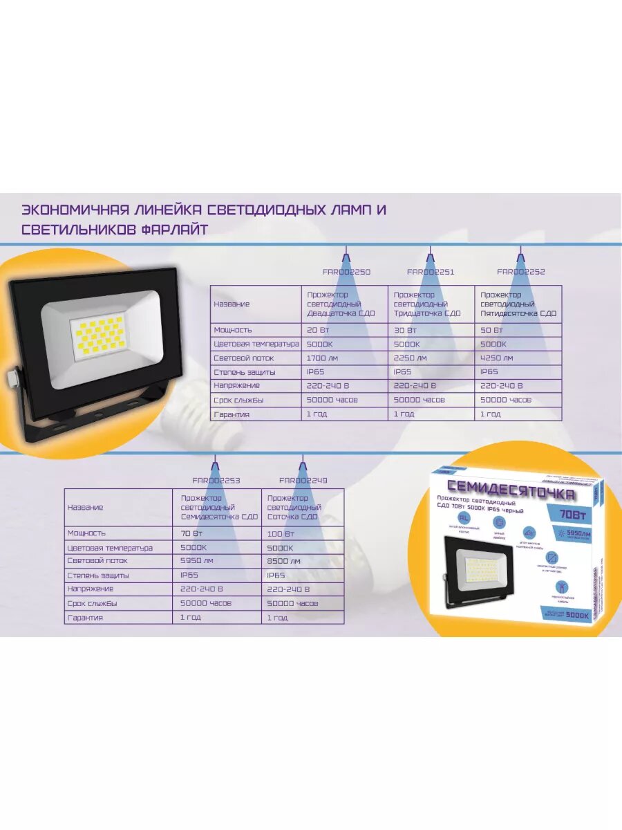 Светодиодный прожектор Фарлайт Двадцаточка СДО 20Вт 5000К IP65 черный FAR002250