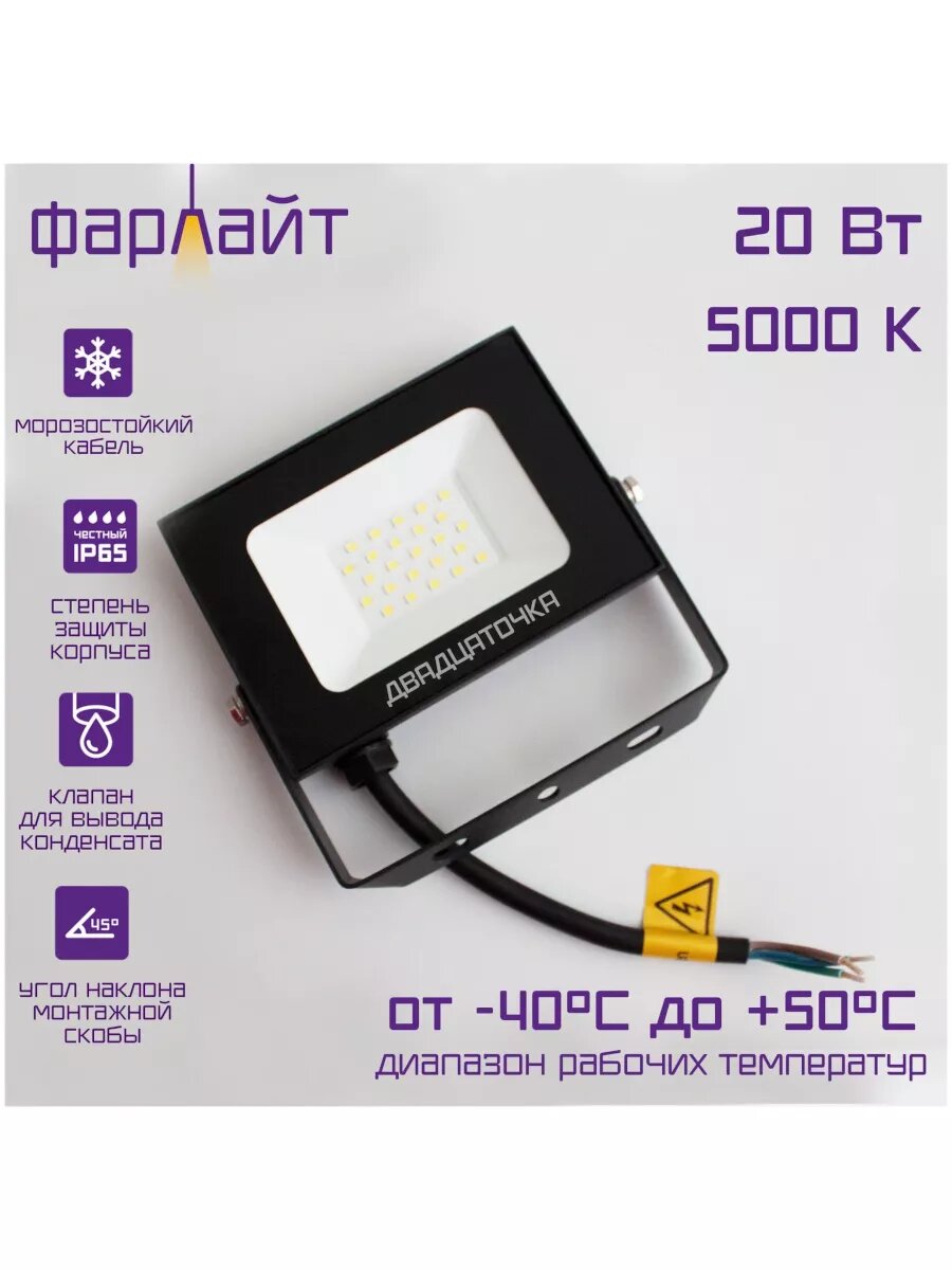 Прожектор LED 20Вт 5000К 1700Лм IP65 черный Двадцаточка Фарлайт FAR002250