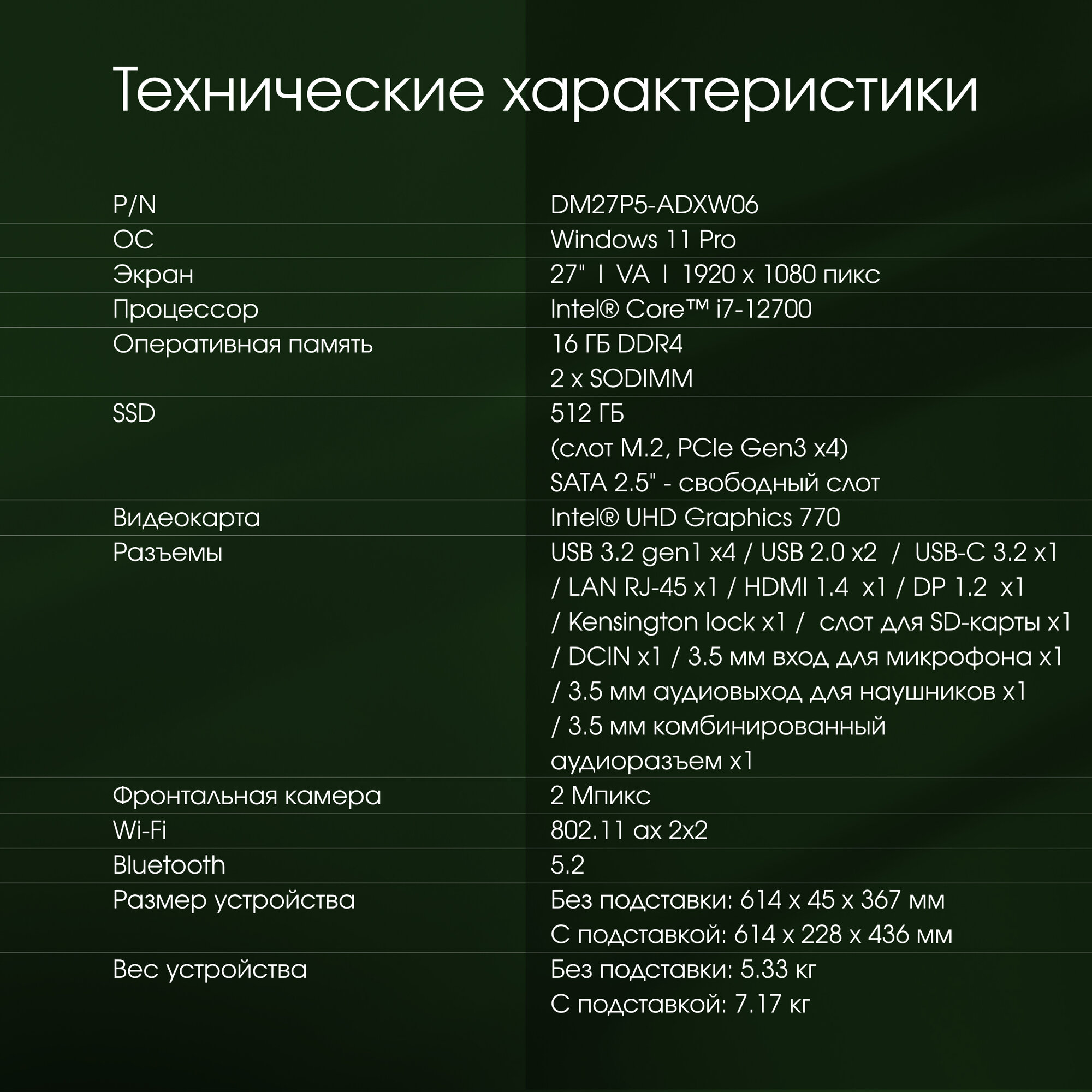 Моноблок DHP 27" i7-12700H 16Gb 512Gb SSD