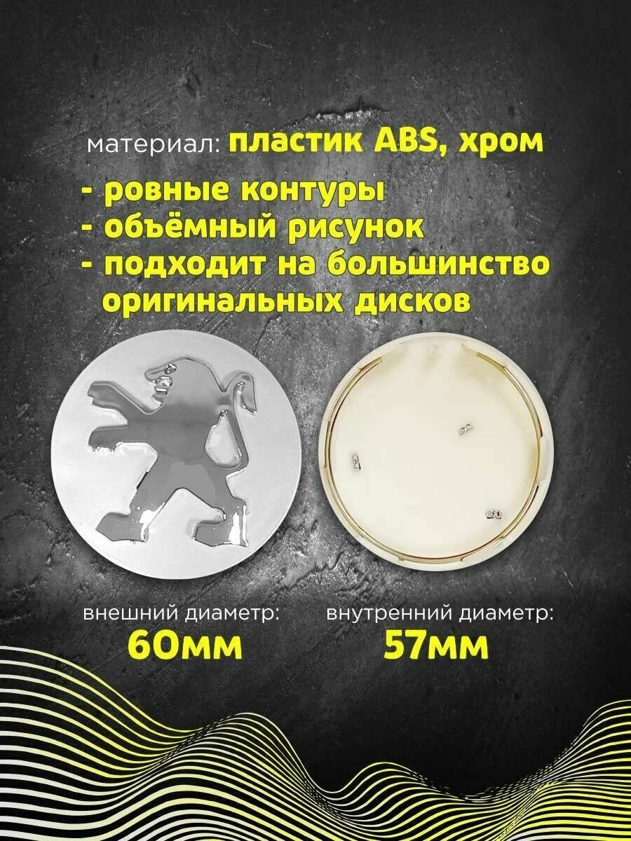 Колпачок заглушка ступицы на литые диски Пежо 60мм, комплект 4шт интересное:
