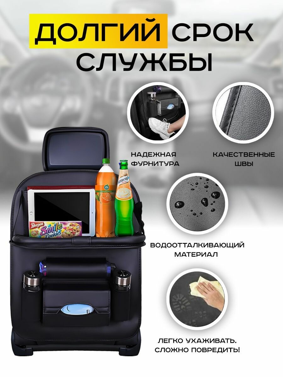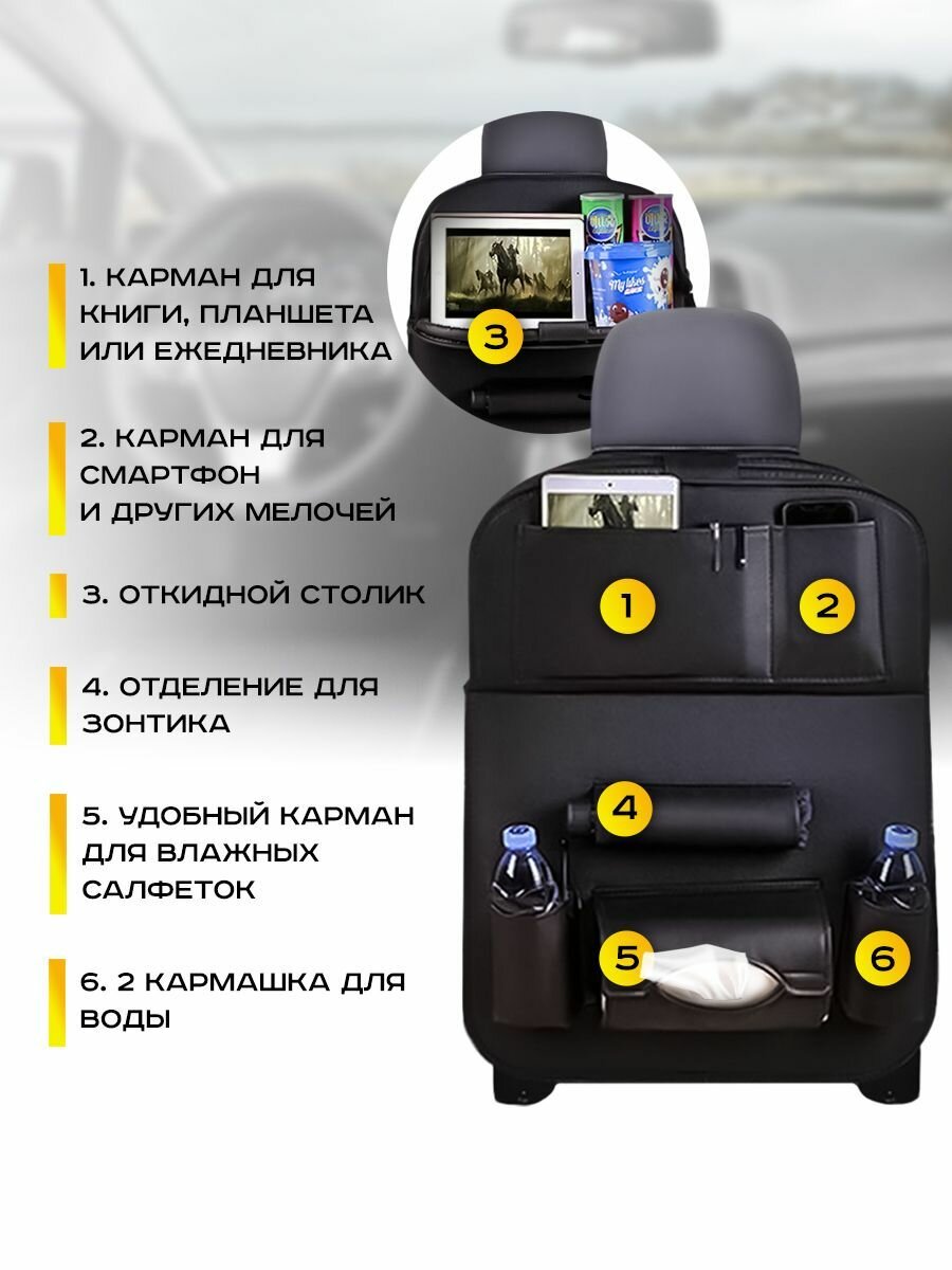 Органайзер для автомобиля на спинку сиденья со столиком и 6 карманами в салон машины Classmark 50х65 см, защитный чехол накидка для хранения вещей интересное: