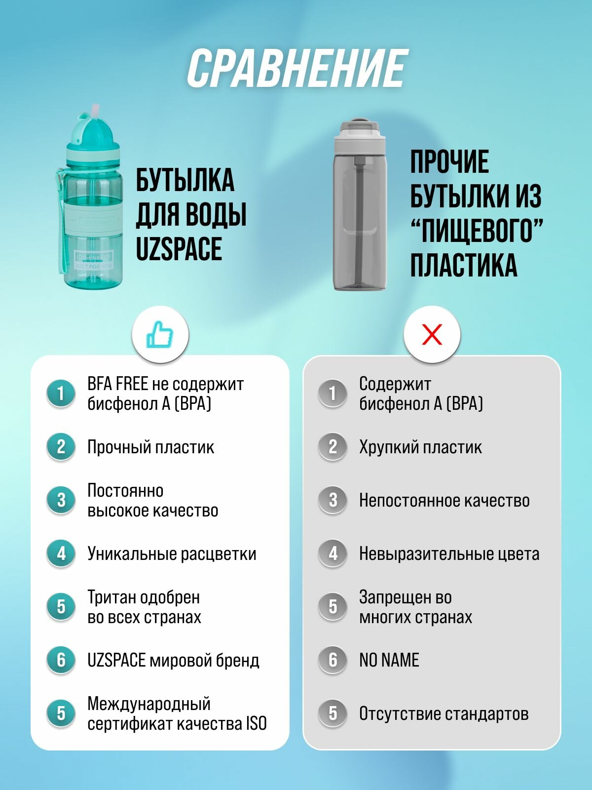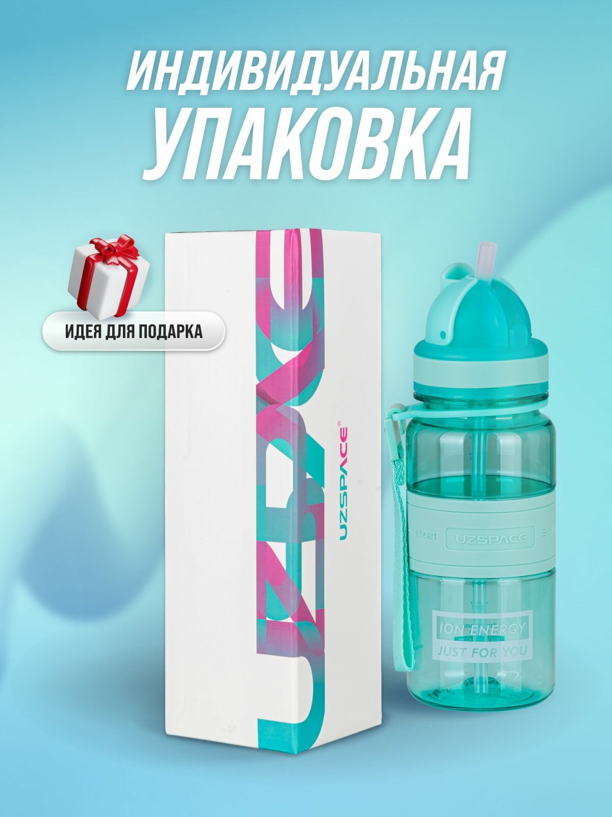 СохранитьБутылка для воды спортивная UZSPACE из Тритана, бирюзовая прозрачная, 350 мл, с трубочкой, герметичная крышка, BPA Free, для спорта и фитнеса, детская в школу интересное: