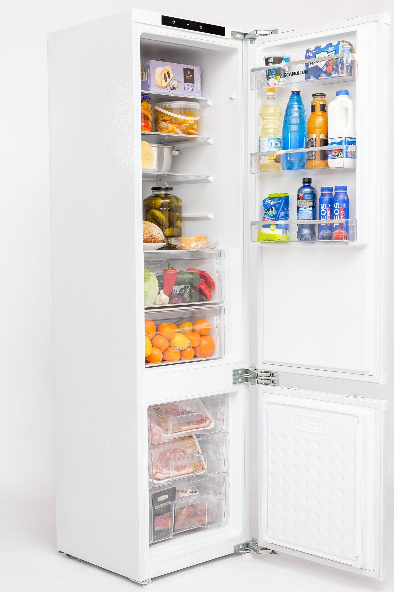 Купить Встраиваемый холодильник двухкамерный SCANDILUX CNFBI210E NO FROST, Петли Door on Door, жёсткое крепление фасада, Высота 193 см, Объём 315 л, LED подсветка, электронное управление, Энергопотребление А, производство Китай