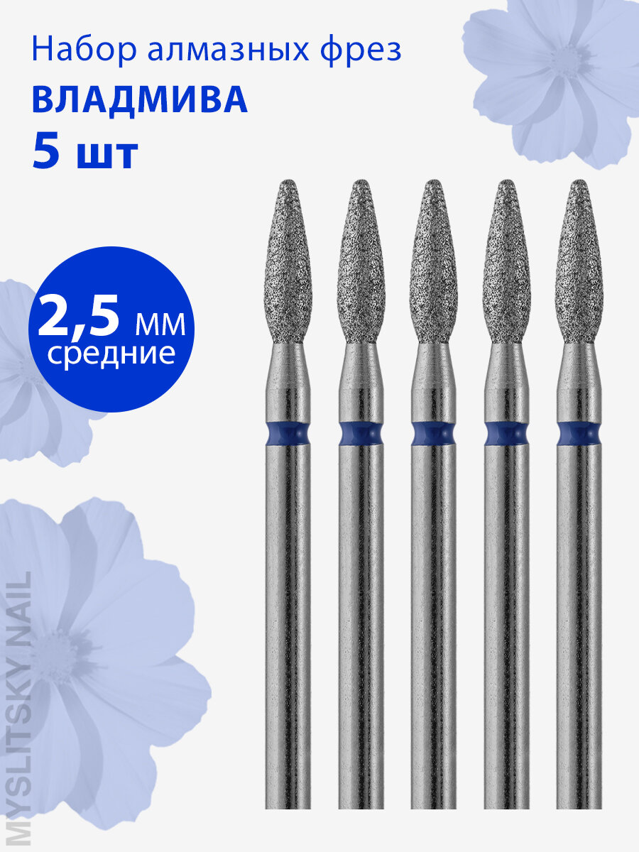 Владмива Фреза для маникюра и педикюра алмазная 806 104 243N 524 025 Средняя синяя пламя (5 шт)