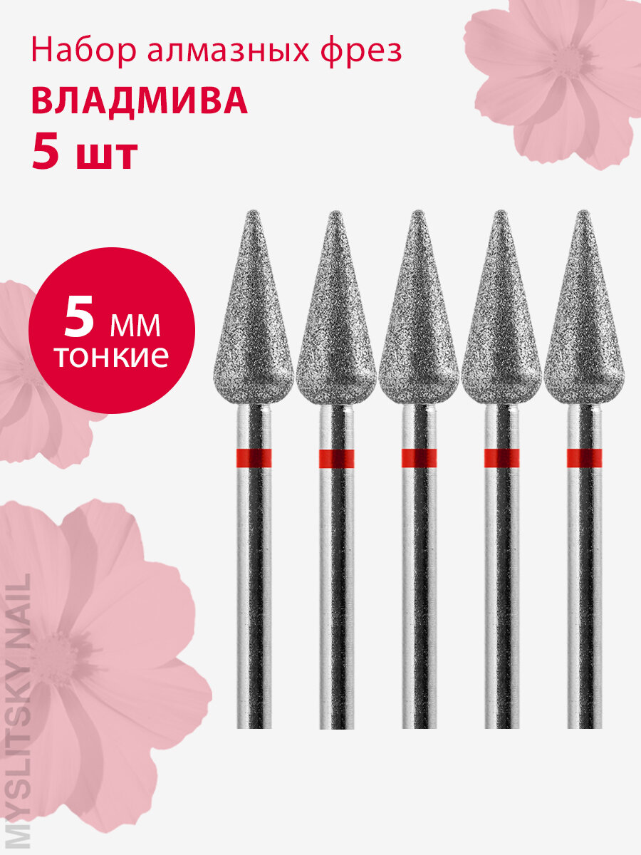 Фреза для маникюра и педикюра алмазная ВладМиВа 806 104 266 514 040 Тонкая конус (упаковка 5 шт)