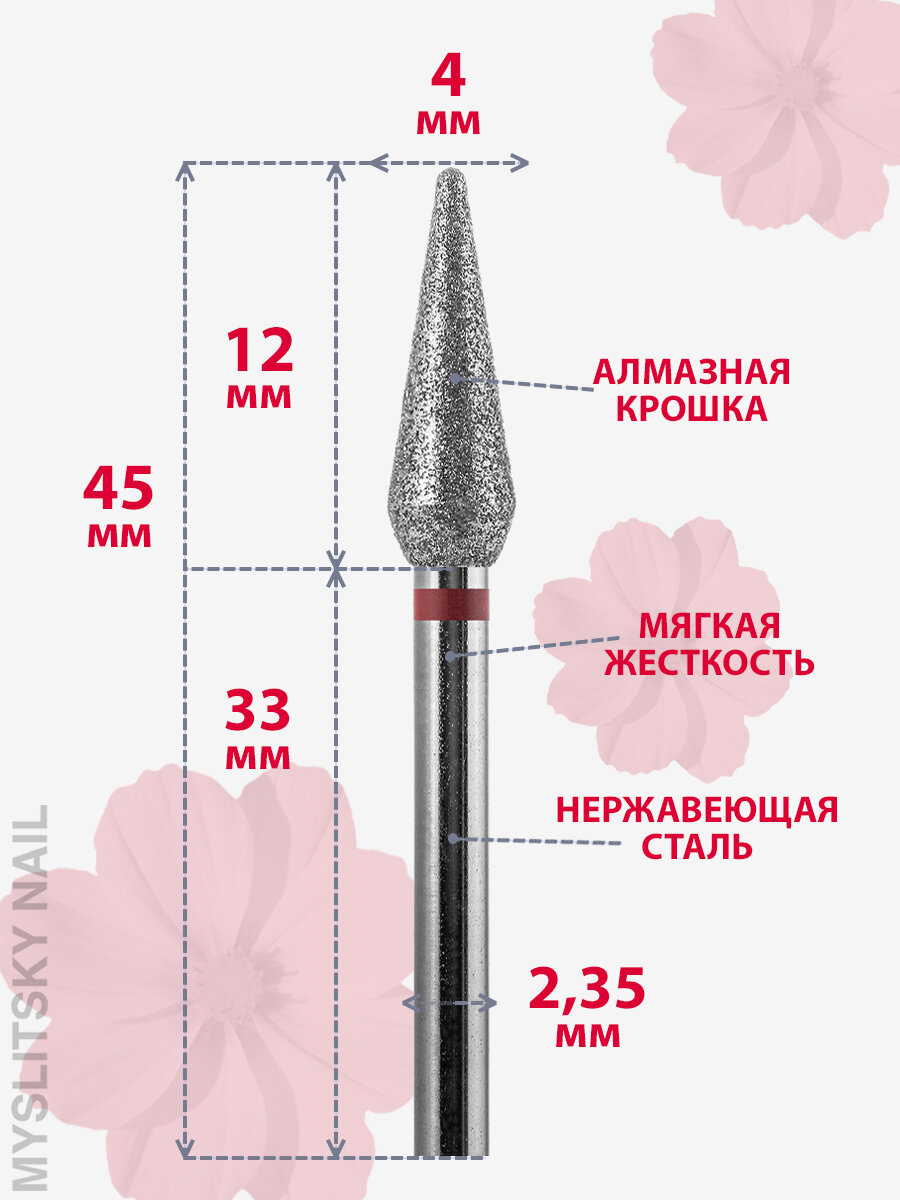 Владмива Фреза для маникюра и педикюра алмазная пламя