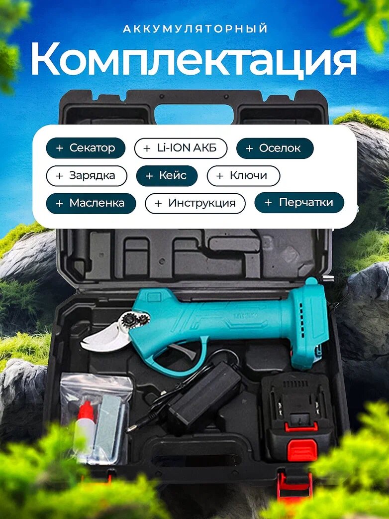 Секатор аккумуляторный, зеленый, с 2 АКБ интересное: