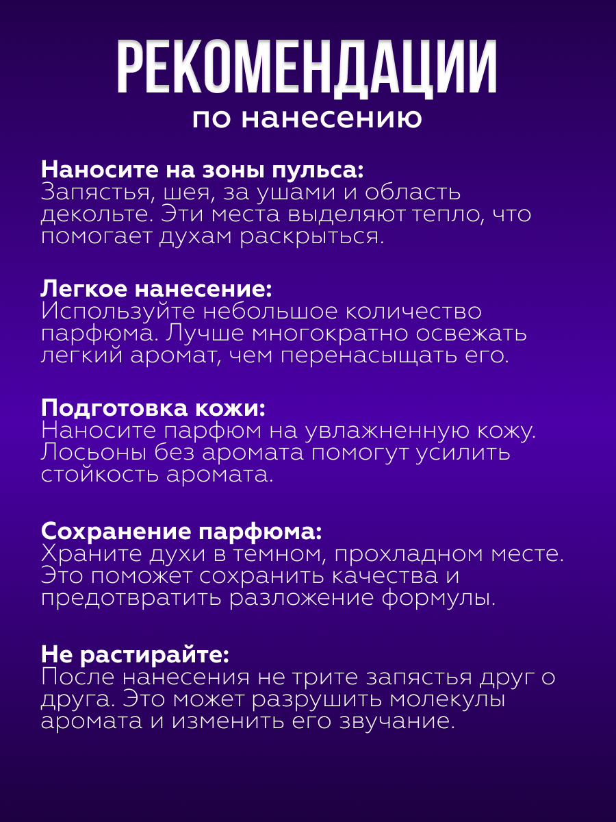 | Ноты | Верхняя нота: Сицилийский мандарин; средние ноты: Розовый пион / дамасская роза / Абрикос и Персик; базовая нота: Белый мускус. |