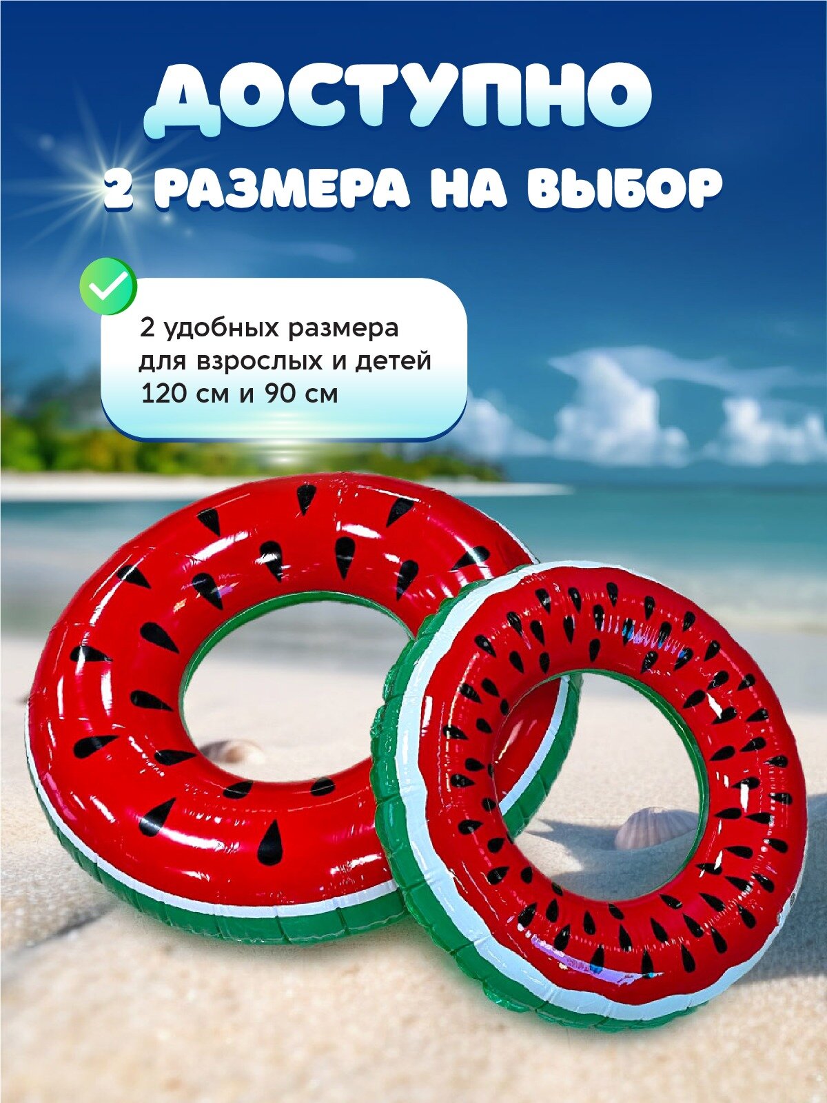 Купить Надувной круг для плавания "Арбуз 120 см" ПВХ повышенной прочности