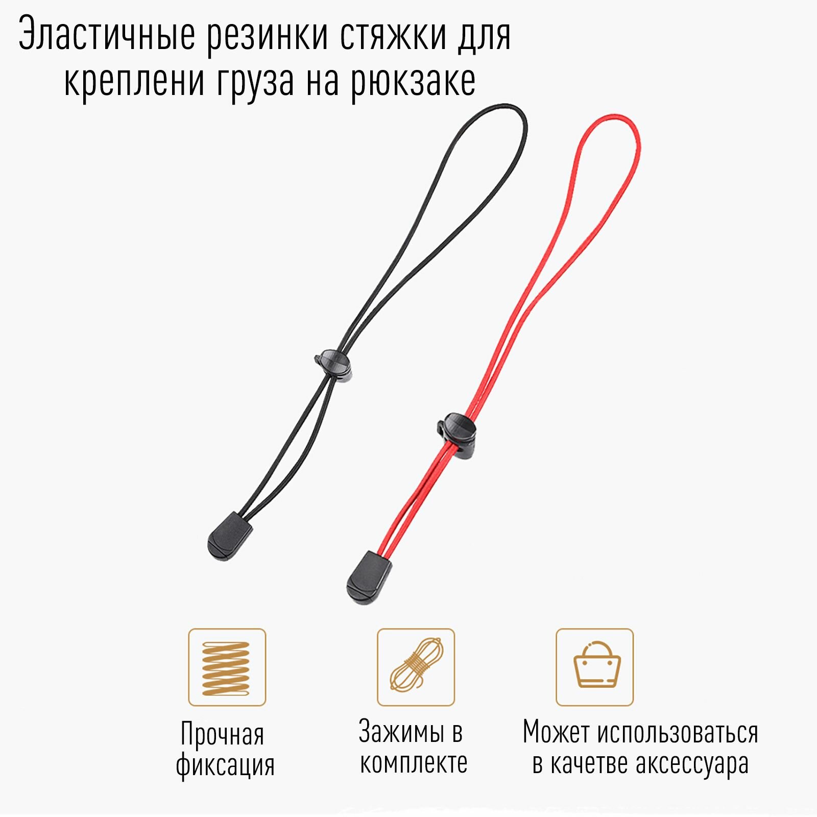 Эластичные резинки стяжки для крепления груза на рюкзаке черный 2 шт