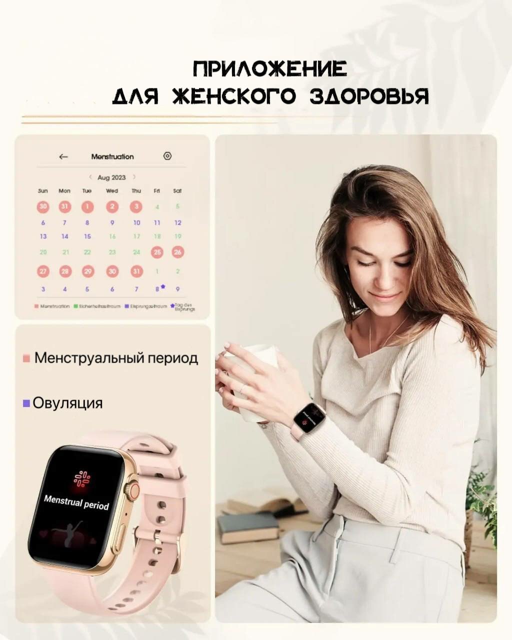 Умные женские смарт-часы Melanda Smart Watch - идеальный подарок маме, любимой девушке, супруге! Розовое золото