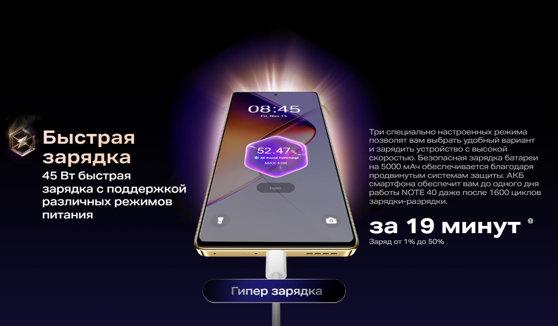 СохранитьСмартфон INFINIX Note 40 8/256Gb Obsidian Black (ростест), ОС Android интересное: