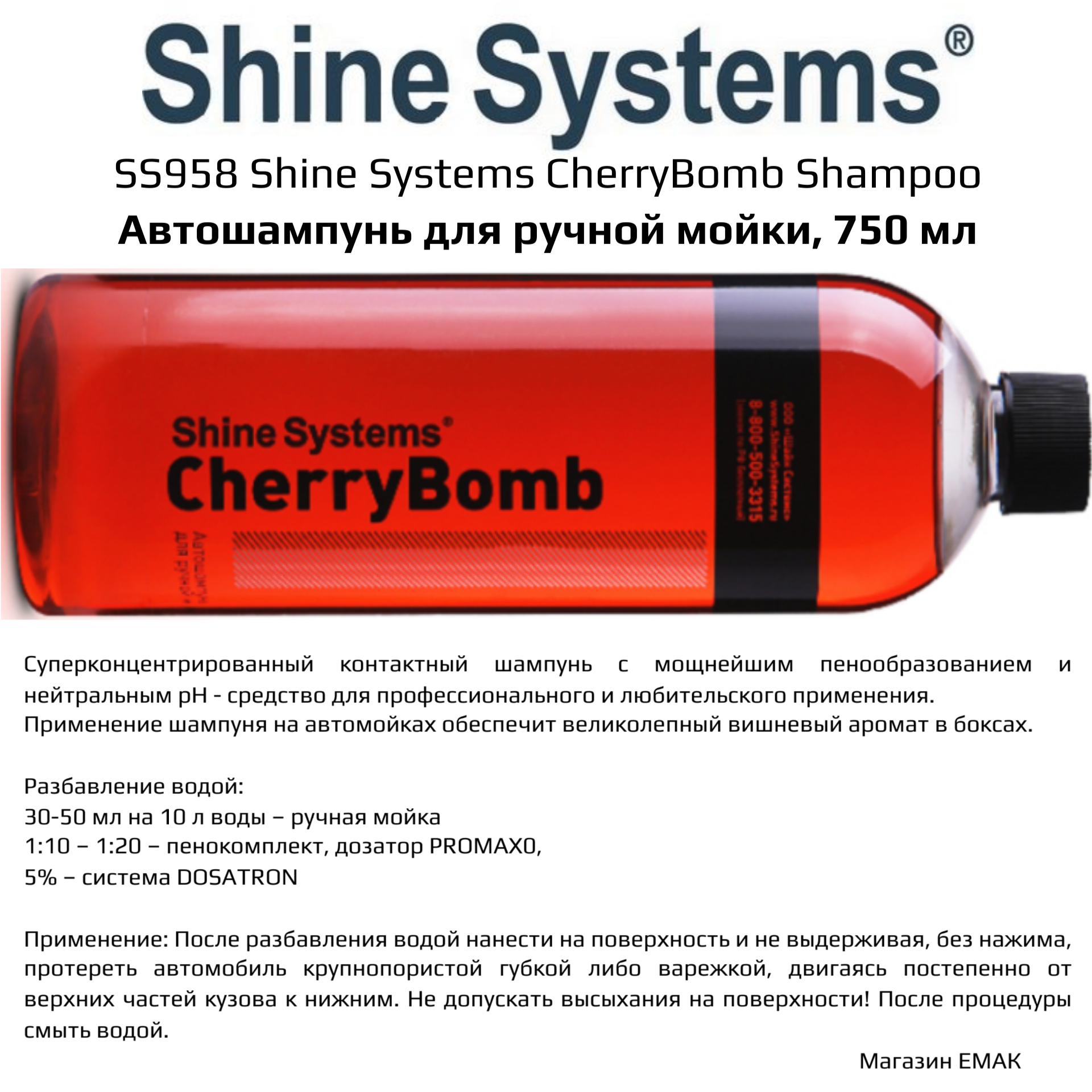 Купить SS958 Shine Systems CherryBomb Shampoo - Автошампунь для ручной мойки, 750 мл