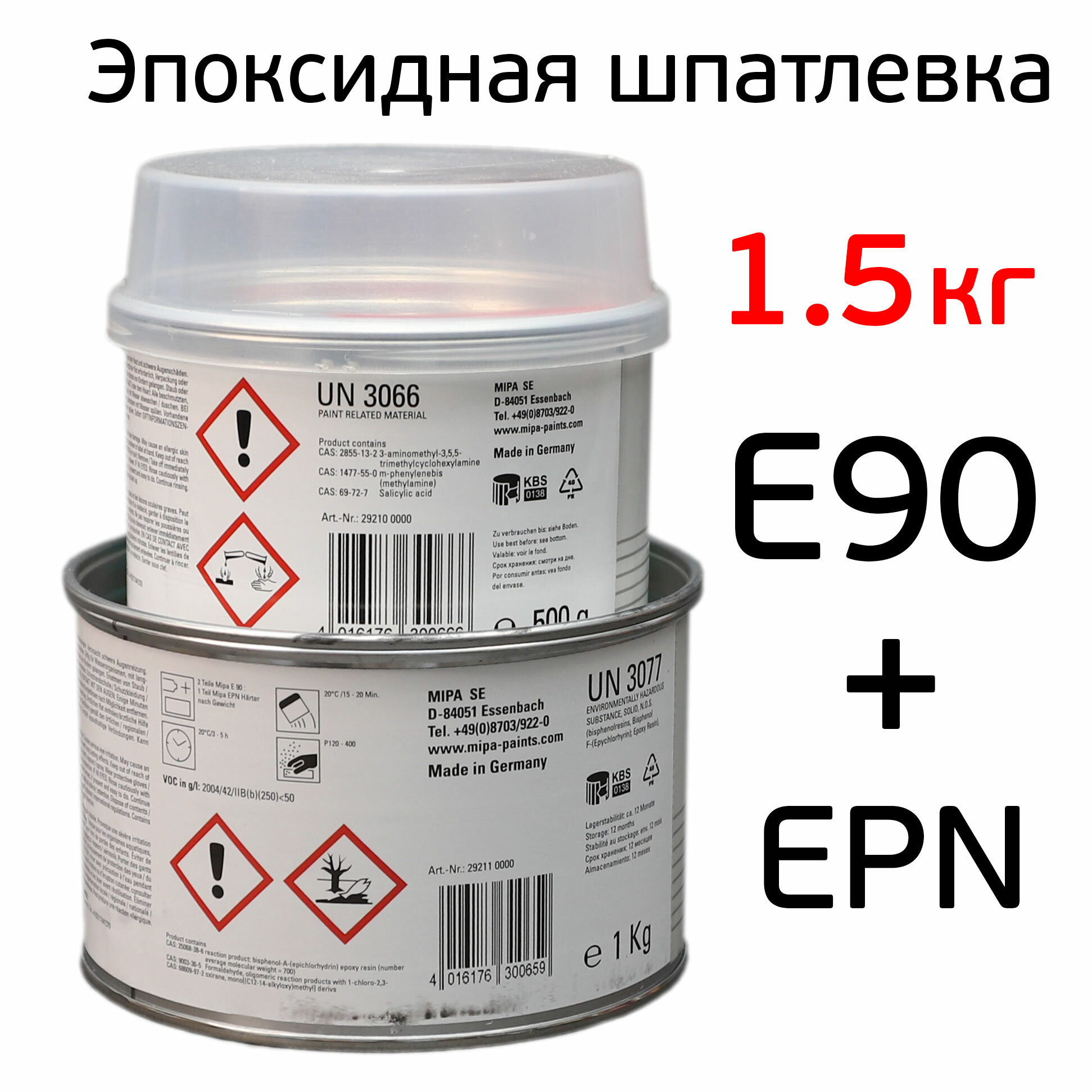 Шпатлевка эпоксидная MIPA 2К E90 (1кг+0,5кг) комплект, автомобильная авторемонтная