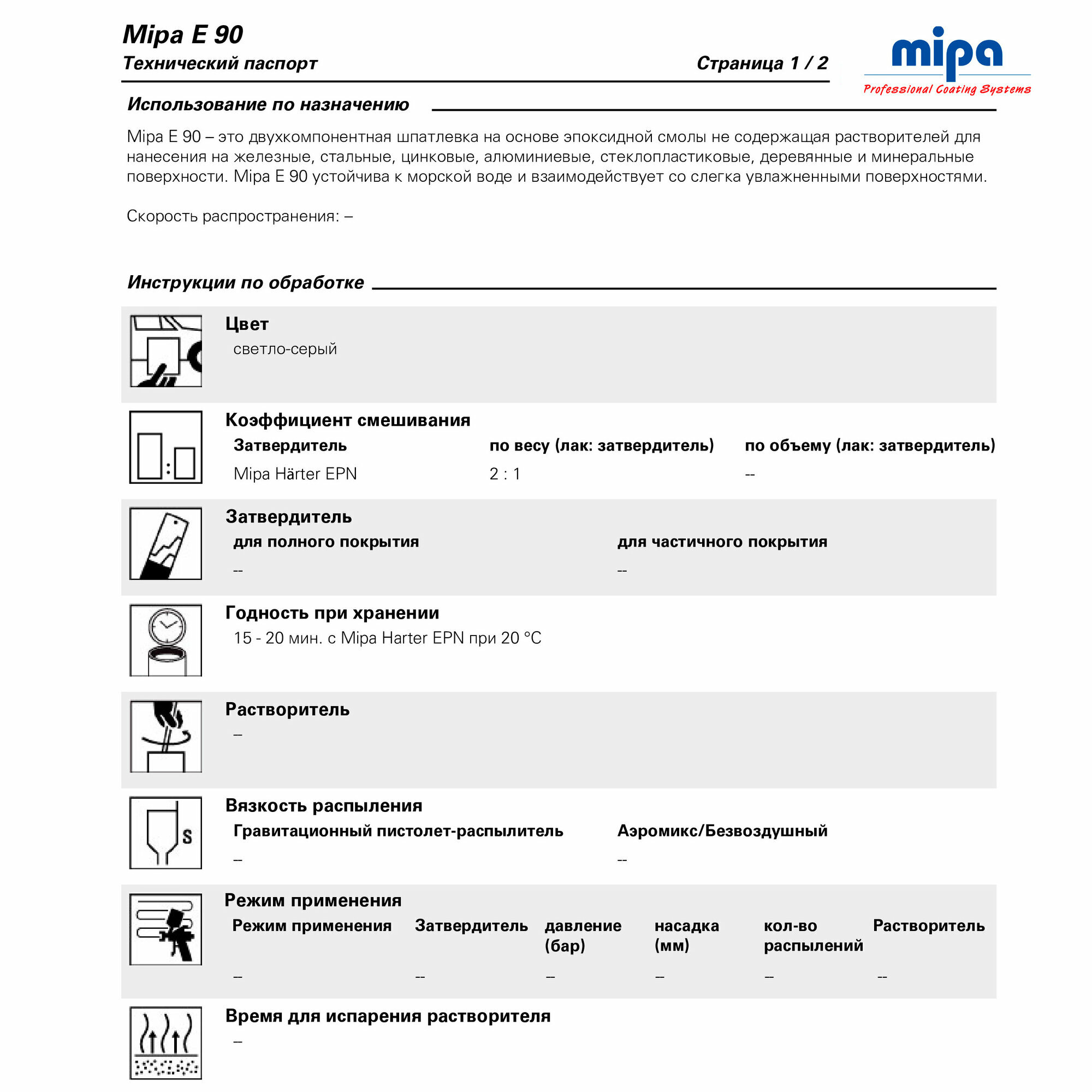 | Максимальное время нанесения при +20°C | 20 мин. |