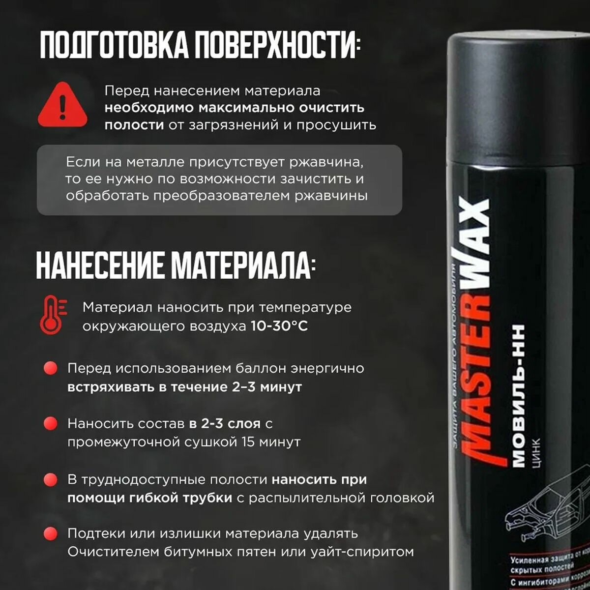 | Дополнительная информация | Мовиль Цинк Мaster Wax аэрозоль |