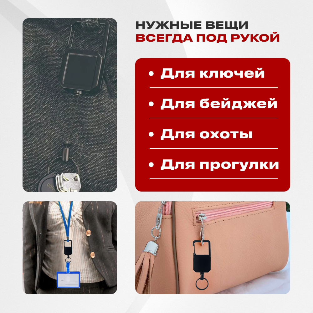 Брелок ретрактор с зажимом на ремень, метал, поворот на 360, черный