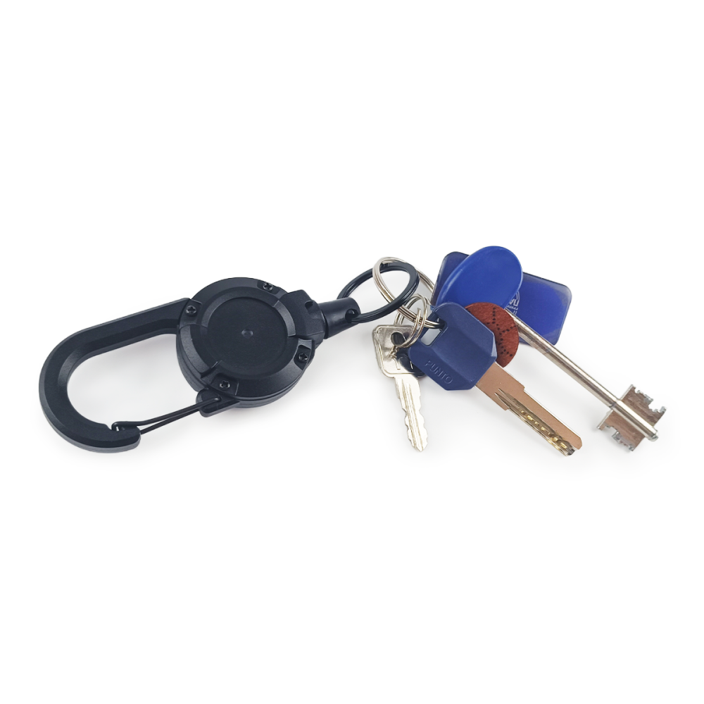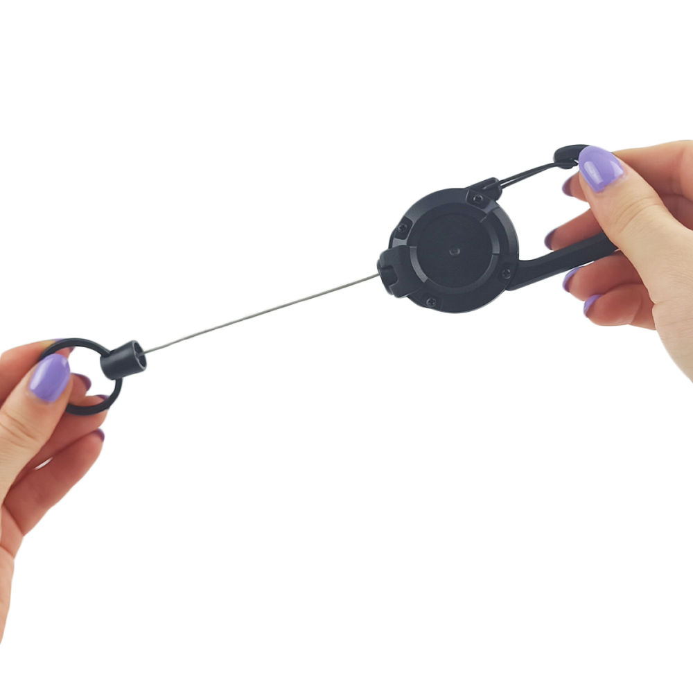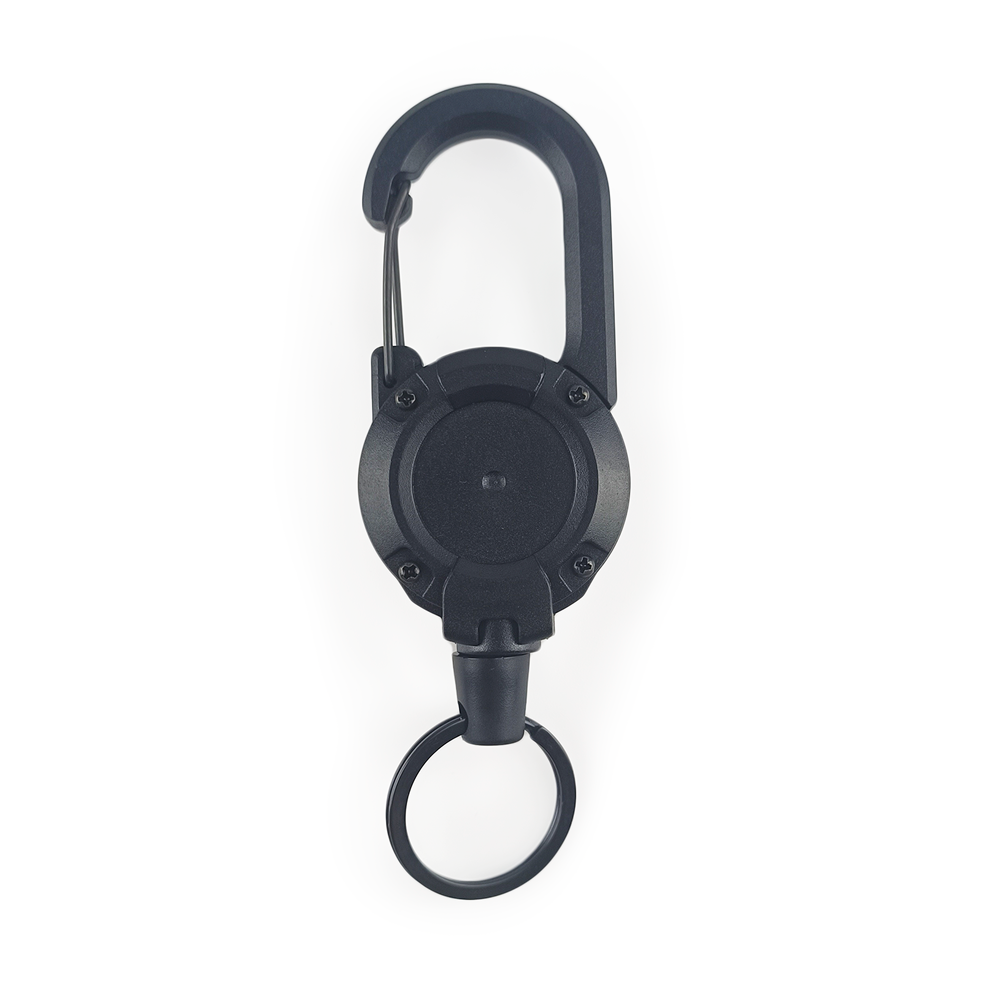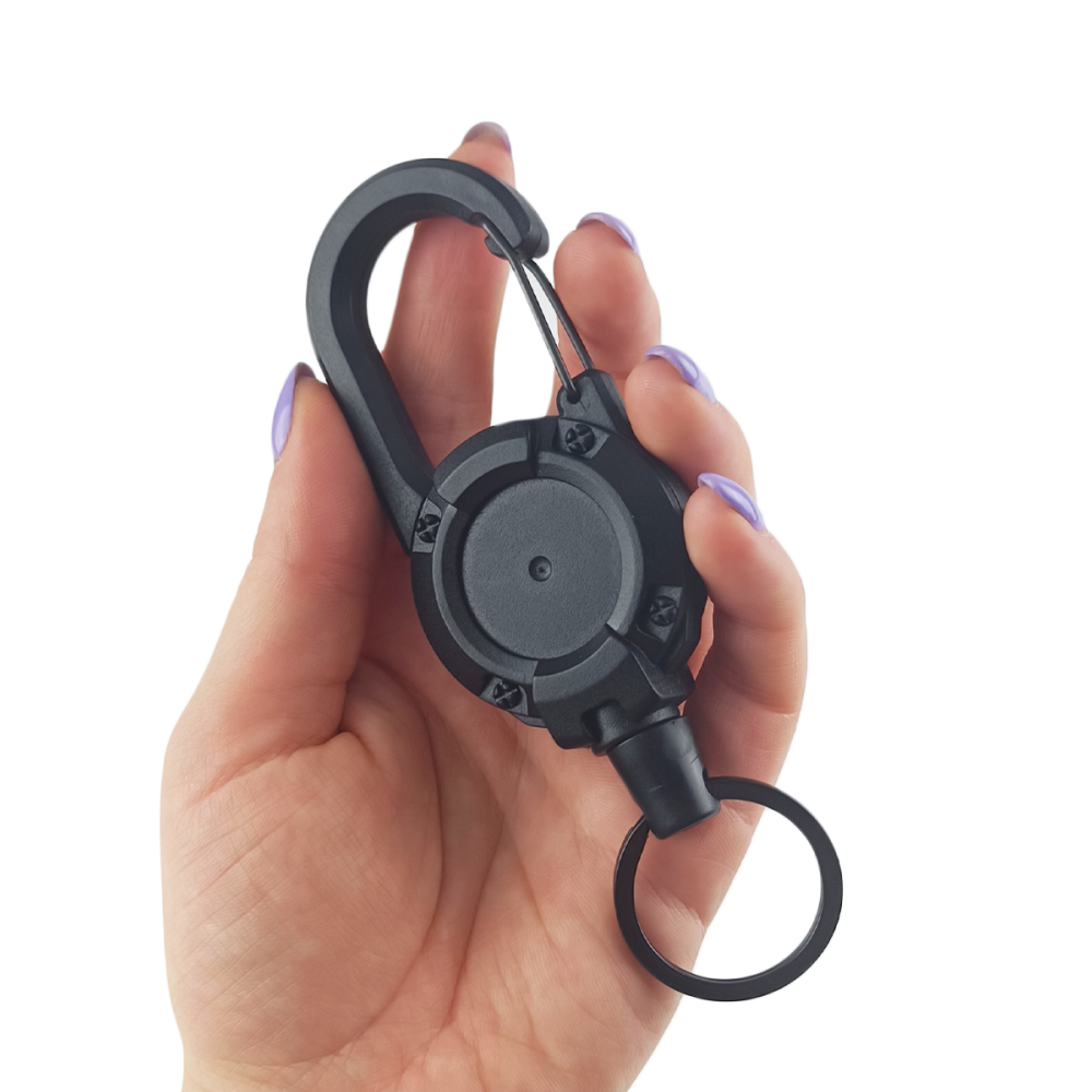 Брелок ретрактор с ремешком и карабином, пластик, черный