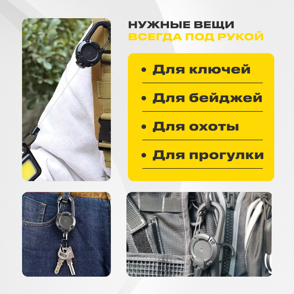Брелок ретрактор с зажимом на ремень, метал, поворот на 360, черный