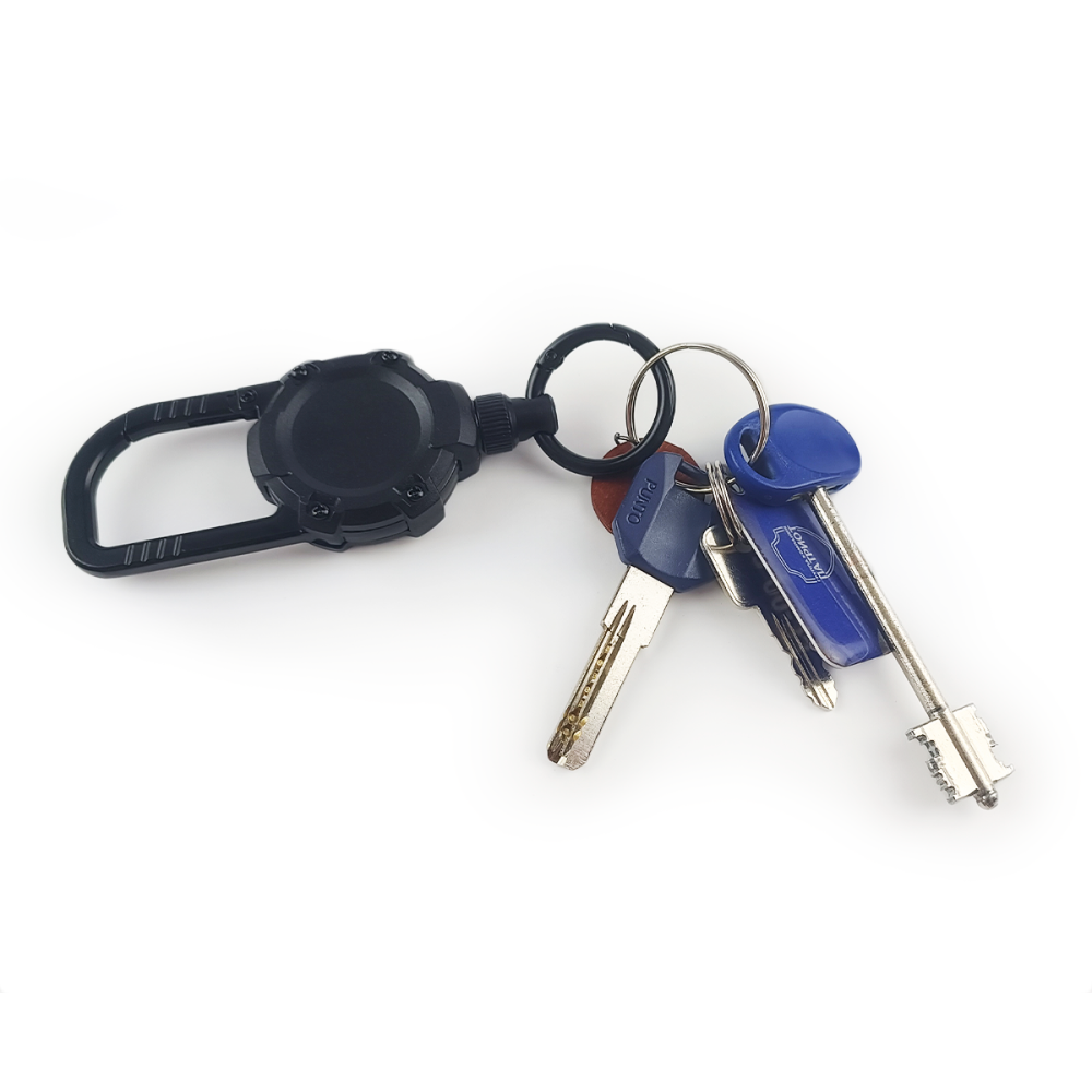 Брелок ретрактор с зажимом на ремень, метал, поворот на 360, черный