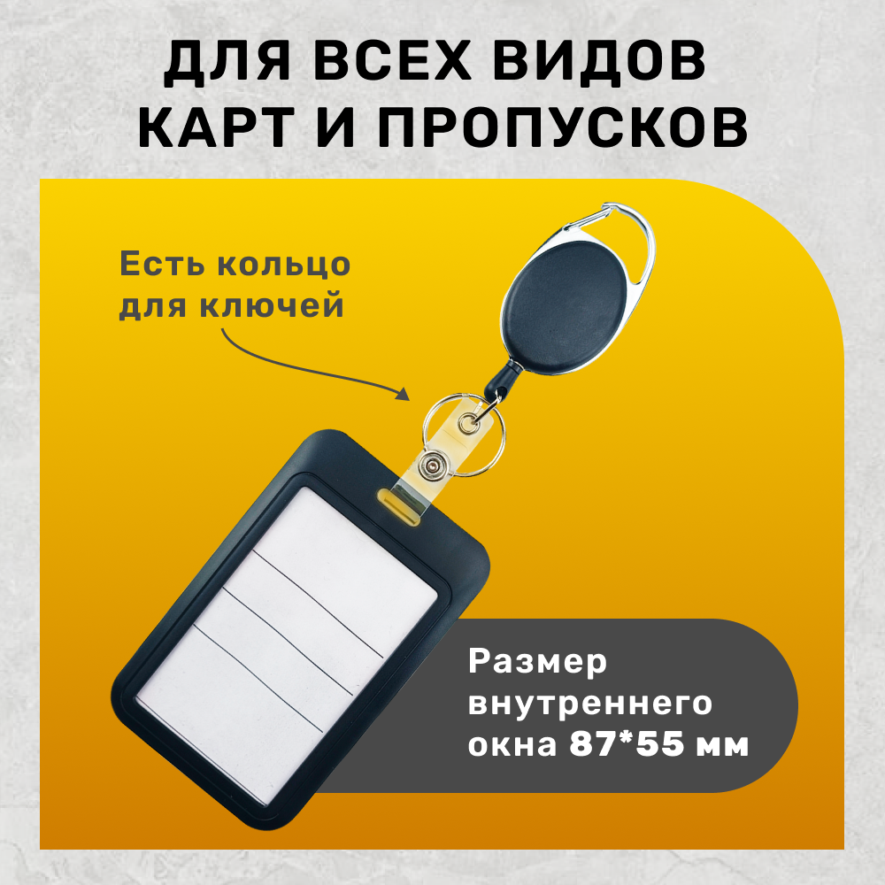 Брелок ретрактор с ремешком и карабином, пластик, черный