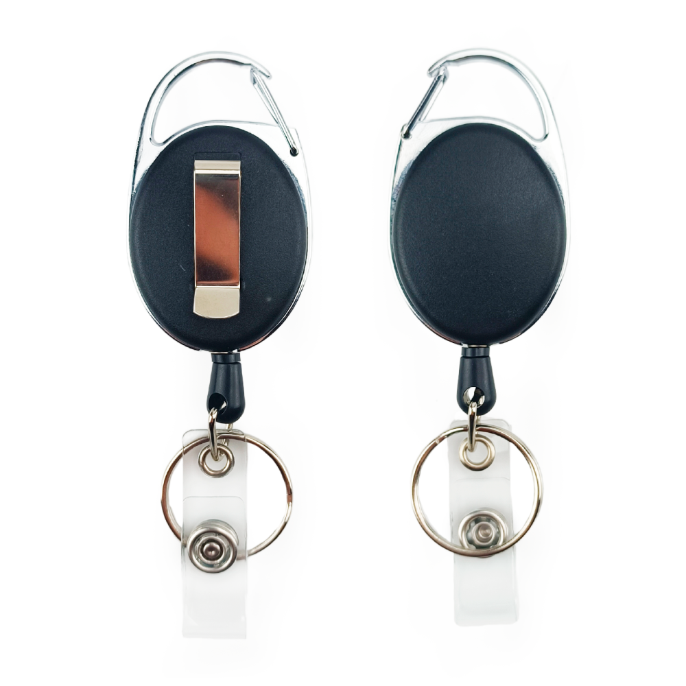 Брелок ретрактор с зажимом на ремень, метал, поворот на 360, черный