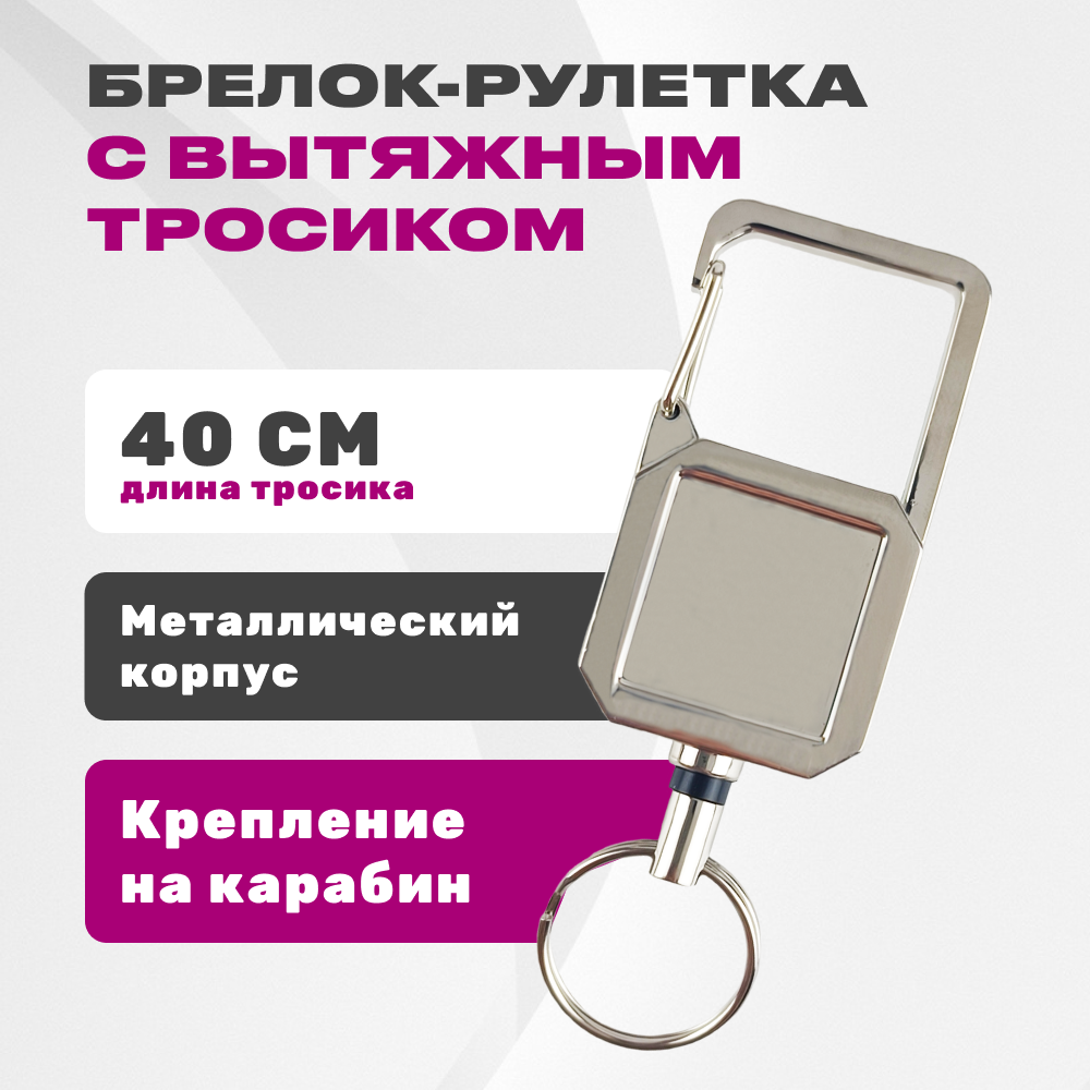 Брелок ретрактор с зажимом на ремень, метал, поворот на 360, черный