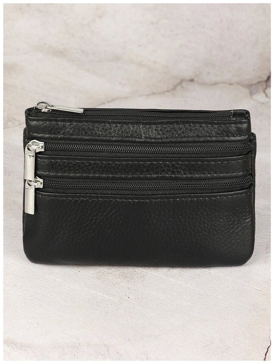 Ключница кошелек картхолдер Capsa из натуральной кожи с основным отделением и двумя карманами на молнии, карманом под СТС, зеленый