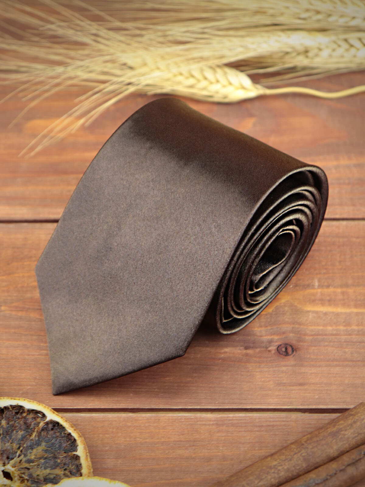 | Подробная комплектация | Широкий мужской галстук атласный однотонный темный шоколад - 1 шт. |