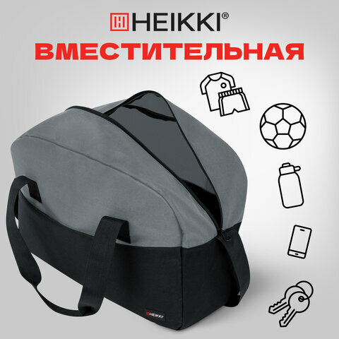 Купить Сумка спортивная HEIKKI, 44х30х17 см, ручная кладь, черный/серый