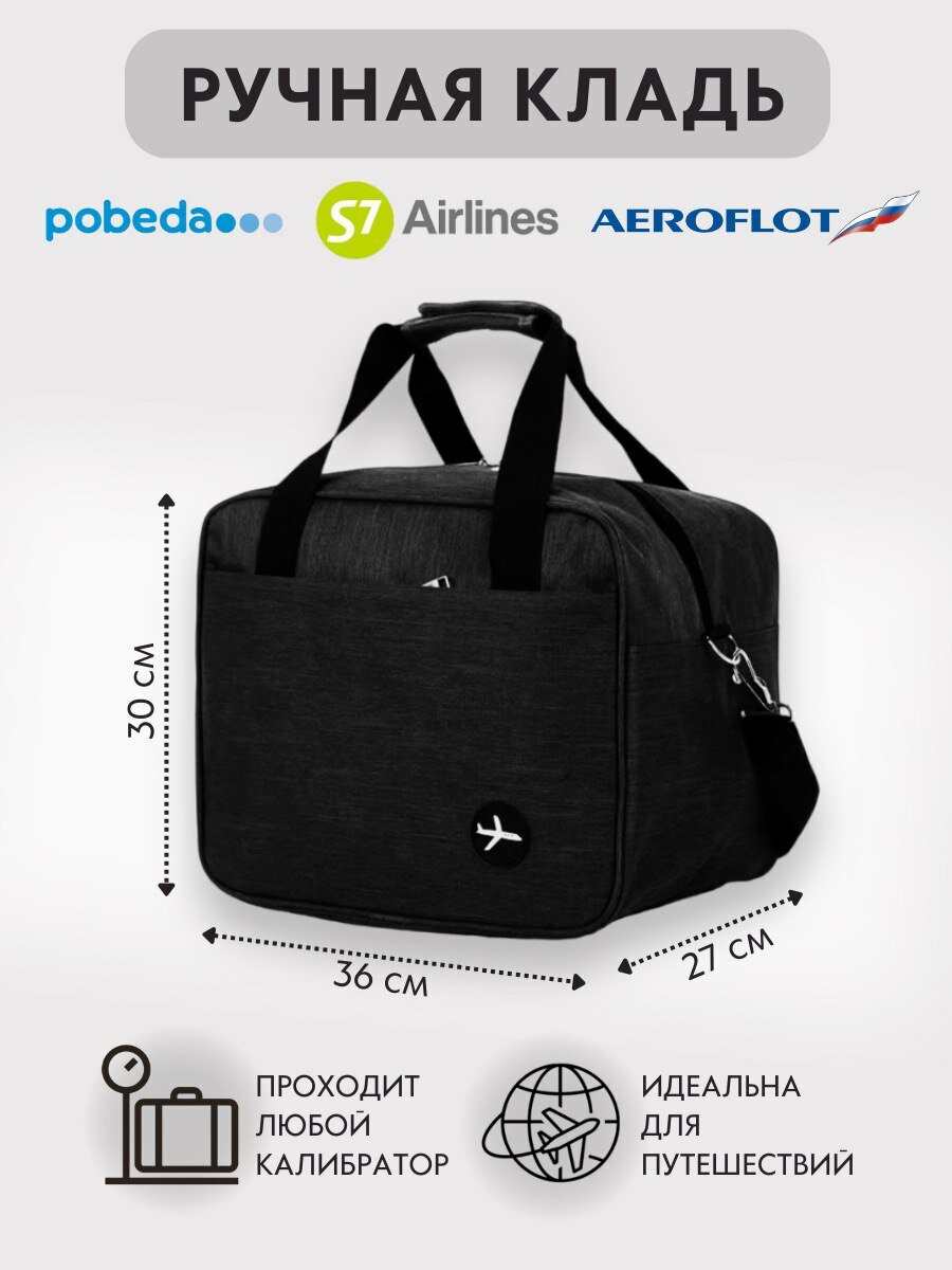 Сумка Ручная кладь - победа 36x30x27, Черная, Сумка дорожная