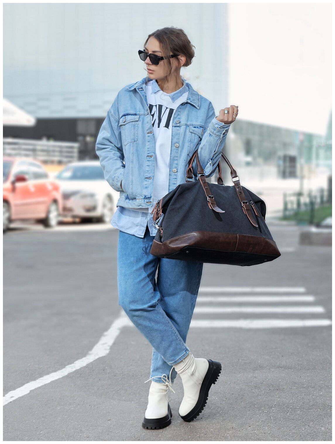 Сумка дорожная UggosBags, ткань: супер прочный канвас, 50 л, 24х39х55 см, ручная кладь, цвет: джинса
