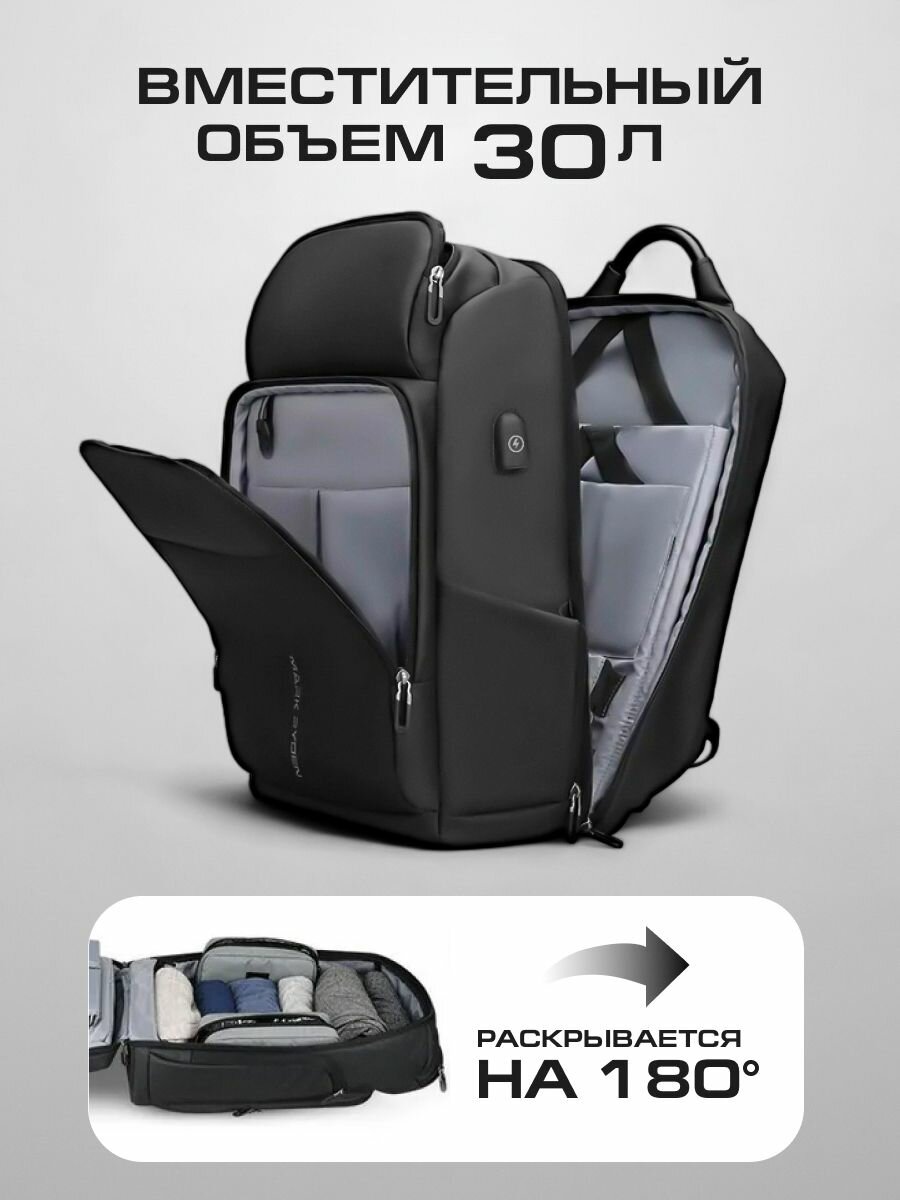 Сумка дорожная для ручной клади женская/мужская Mark Ryden для вещей, сменной обуви, аксессуаров, черная