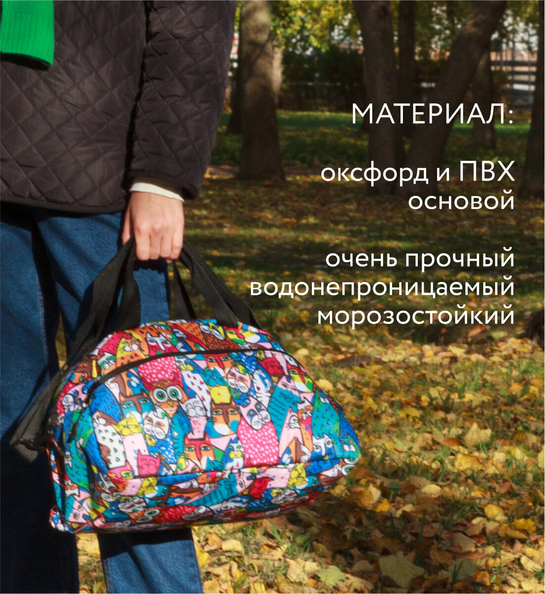 Сумка спортивная женская, мужская, ANTAN 2-322, коты цветные, мультиколор