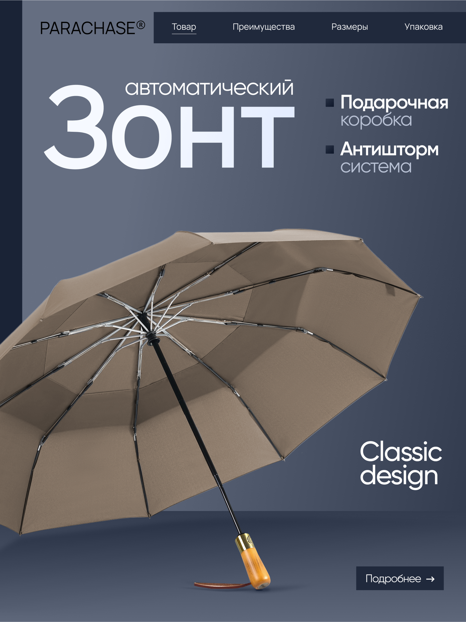 СохранитьЗонт-трость PARACHASE, хаки интересное: