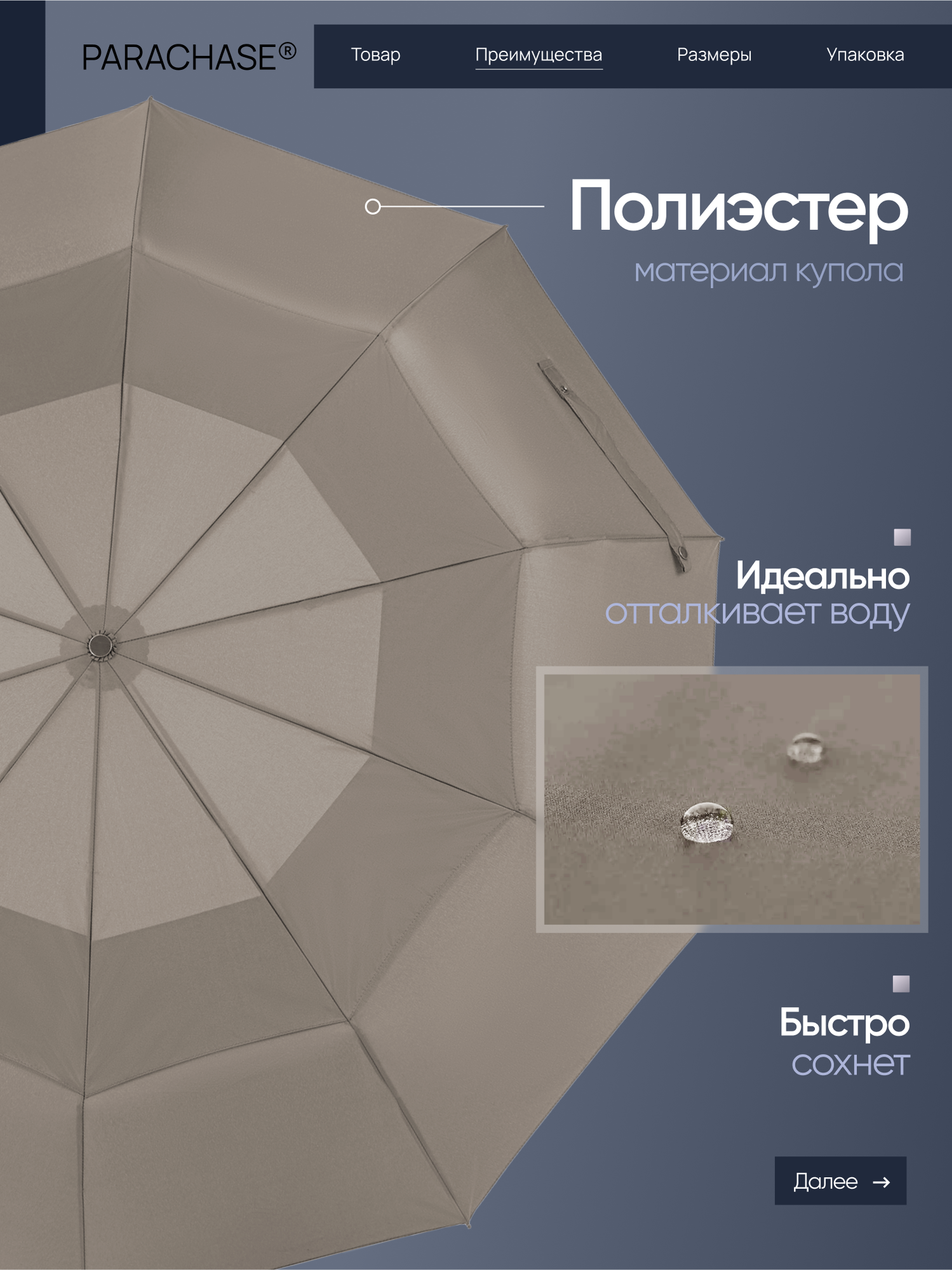 | Особенности модели | УФ-защита, система «антиветер», чехол в комплекте |