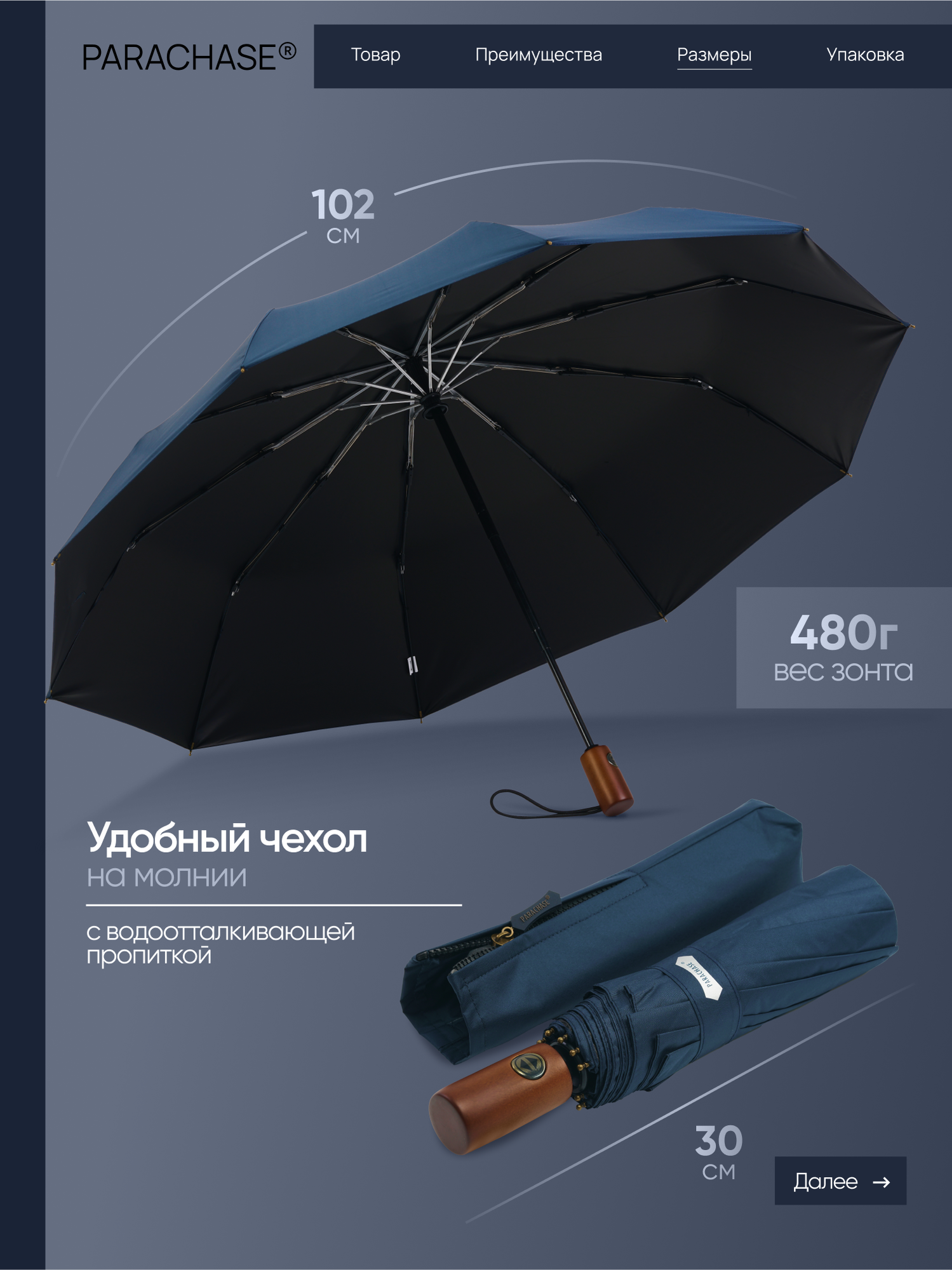 Зонт PARACHASE, синий интересное: