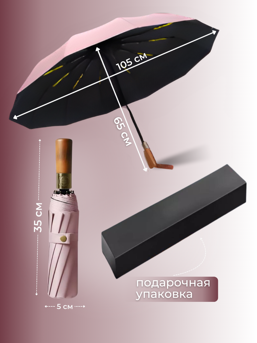 Зонт-автомат с деревянной ручкой, розовый