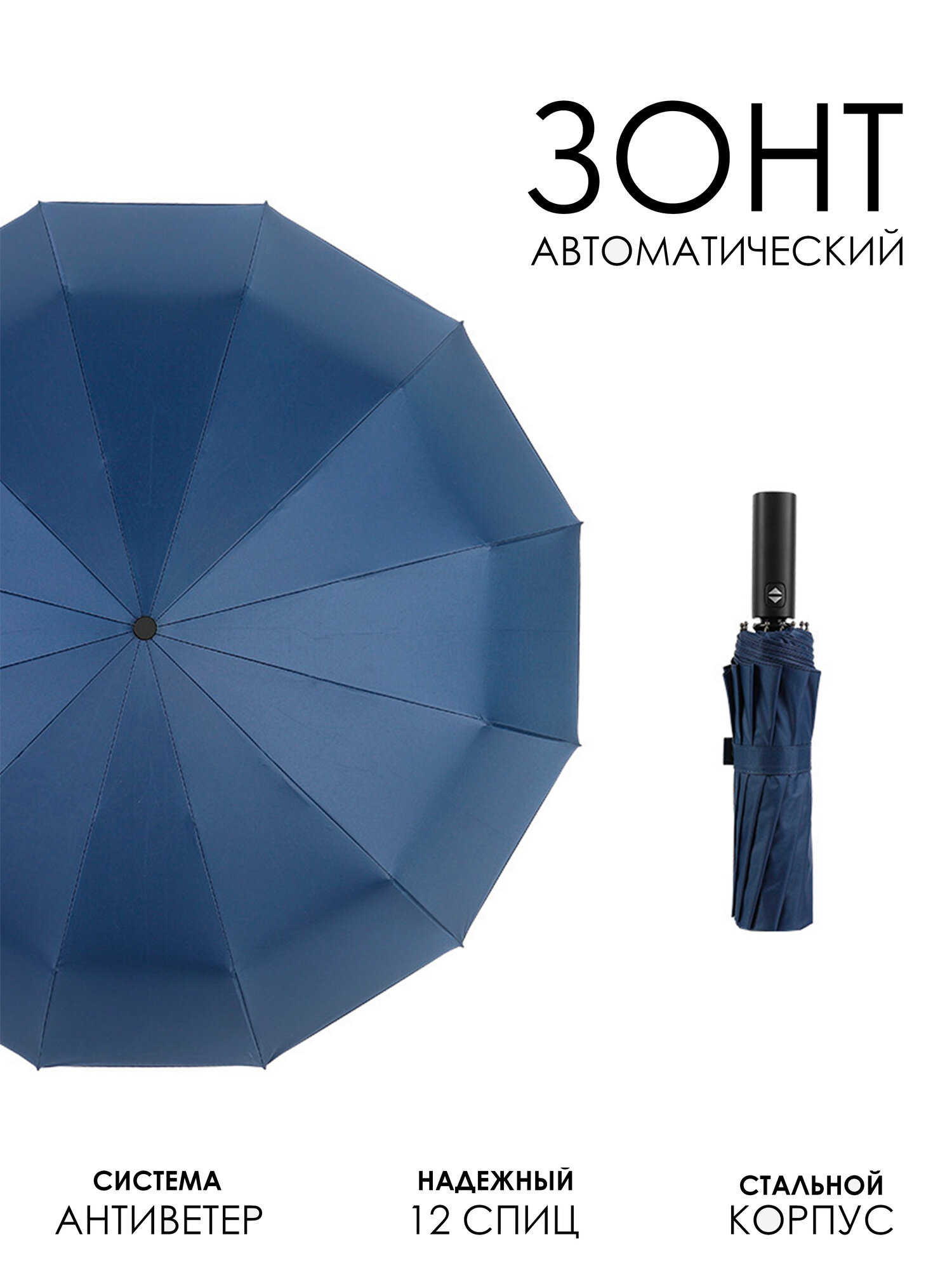 Зонт 12-ти спицевый автоматический. (синий)
