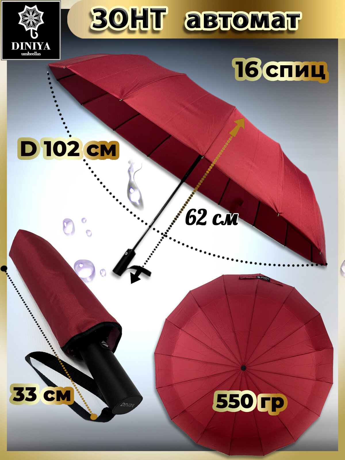 Зонт Diniya, бордовый интересное:
